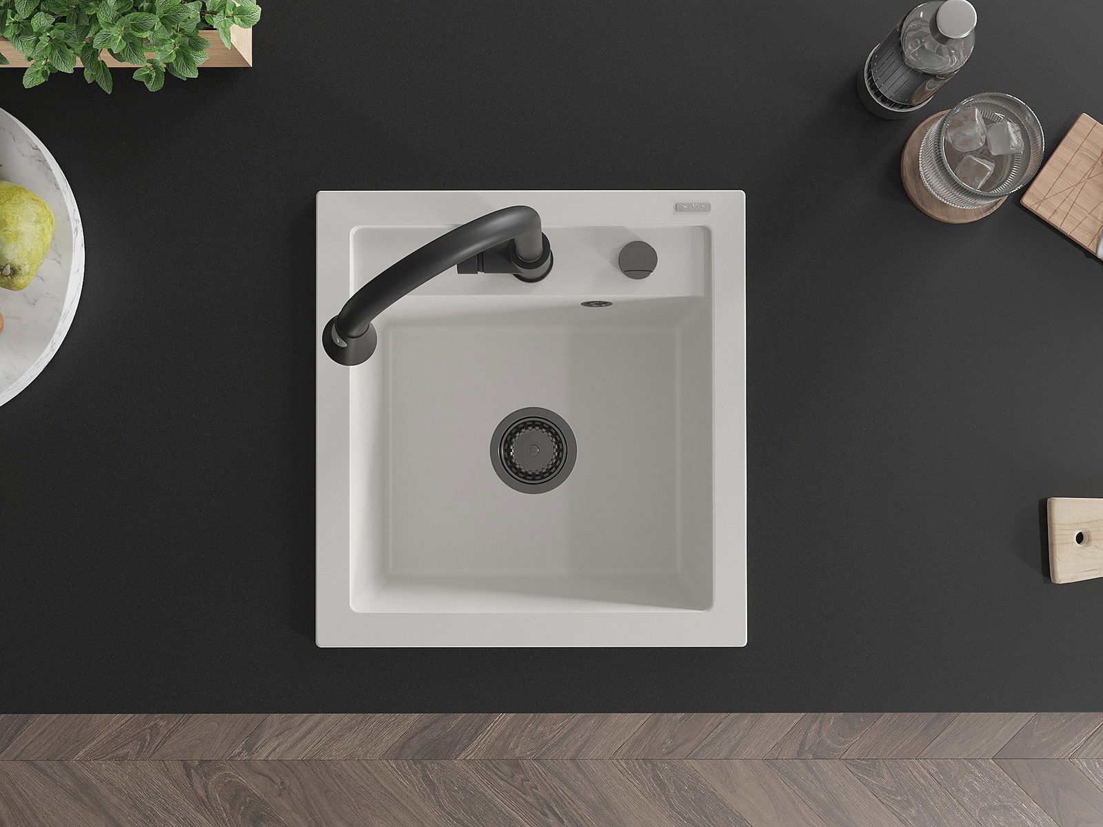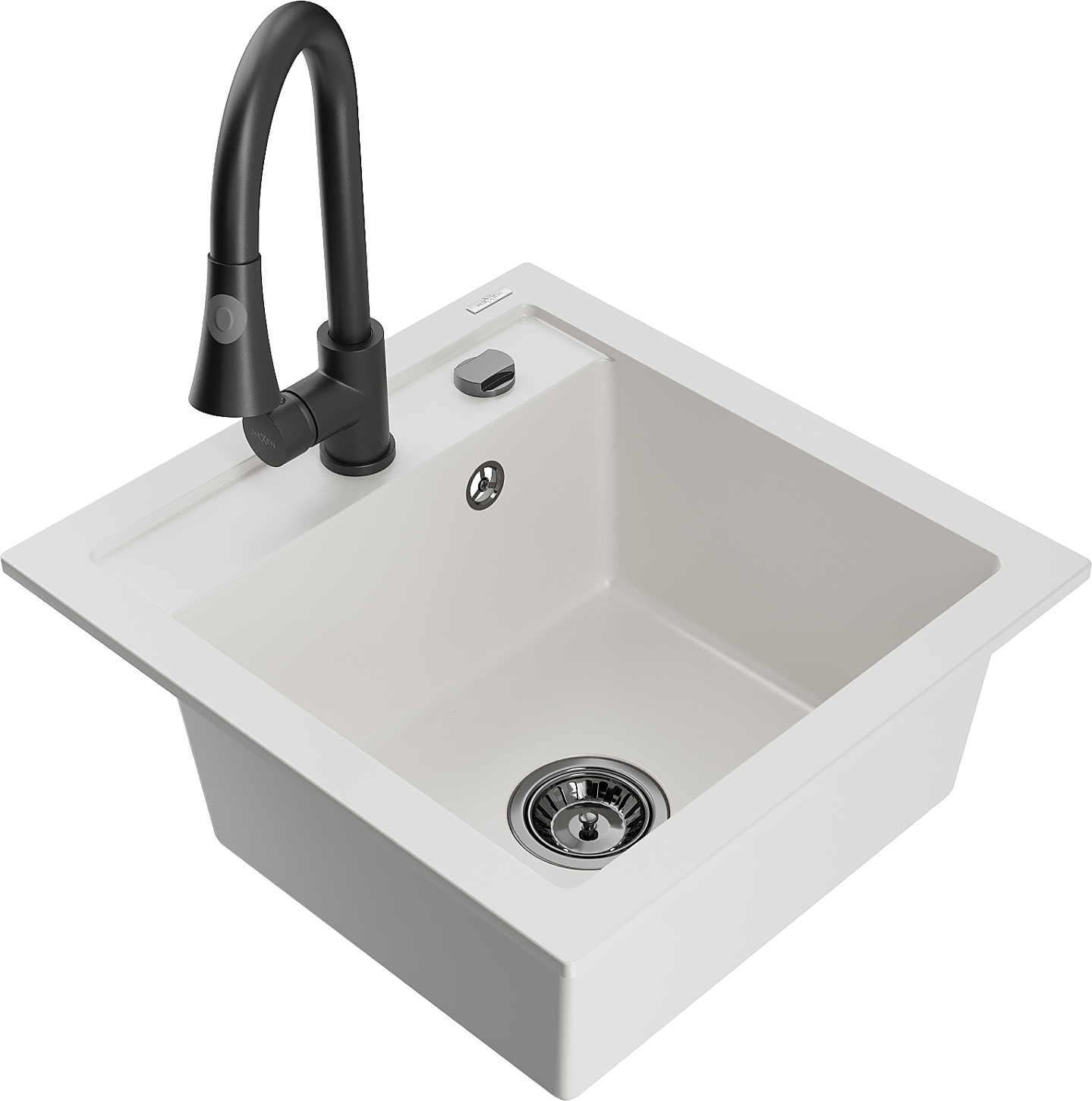 Mexen Vito granīta izlietne ar 1 nodalījumu un virtuves jaucējkrānu Elia, balta - 6503-20-670101-70