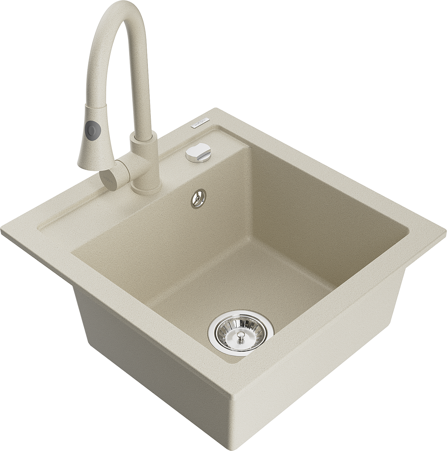 Mexen Vito granitizlietne ar vienu nodalījumu un virtuves jaucējkrāns Elia, bēšs - 6503-69-670101-69