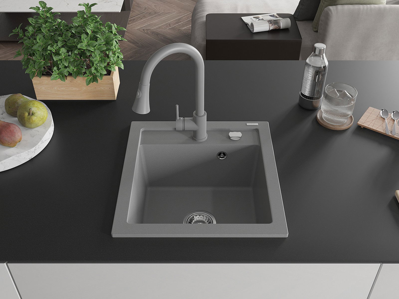 Mexen Vito granitizlietne ar vienu nodalījumu un virtuves jaucējkrānu Elia, pelēka - 6503-71-670101-71
