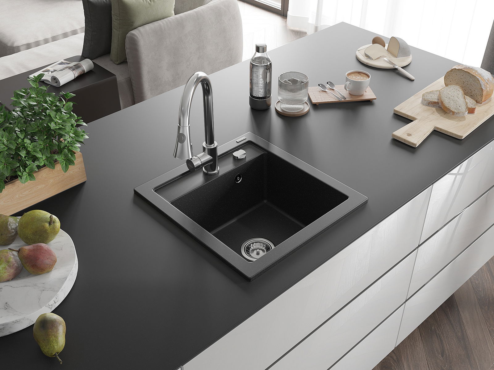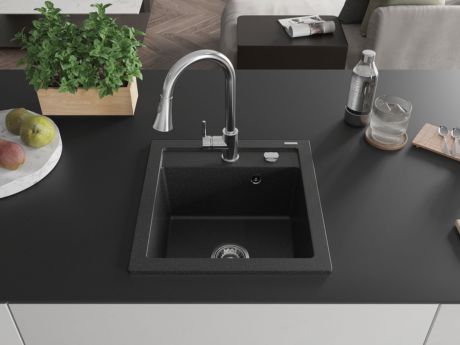 Mexen Vito granitē izlietne ar vienu nodalījumu un virtuves jaucējkrāna Elia, melna/sudraba metāliskā - 6503-73-670101-00