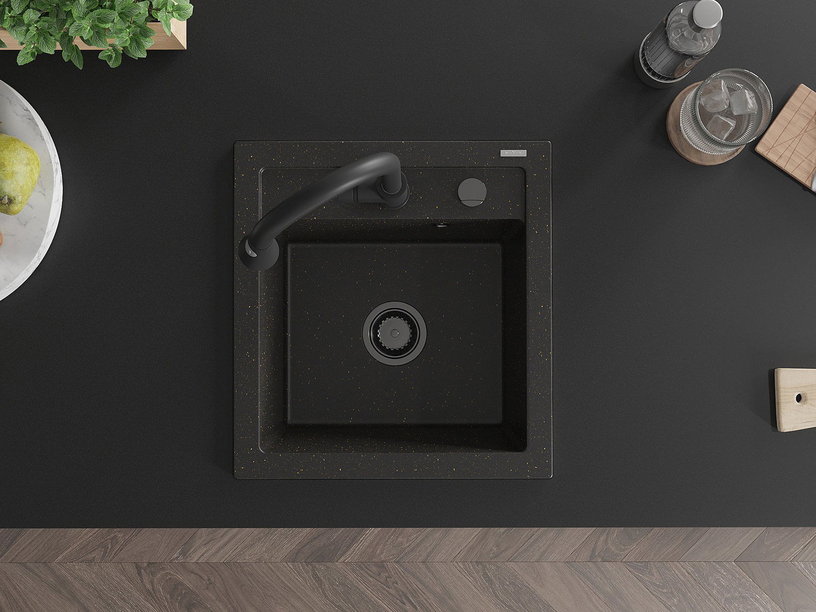 Mexen Vito granitais izlietne ar vienu nodalījumu un virtuves jaucējkrānu Elia, melna/zeltīta metālika - 6503-75-670101-70-B