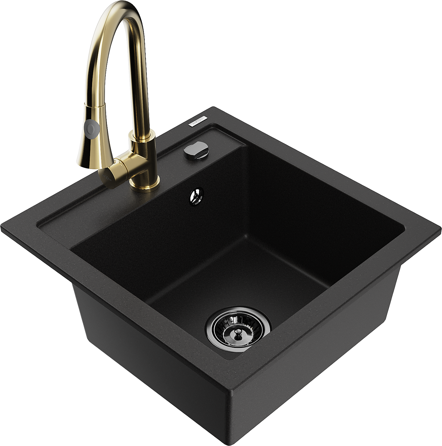 Mexen Vito granīta izlietne ar vienu nodalījumu un virtuves jaucējkrānu Elia, melna - 6503-77-670101-50-B