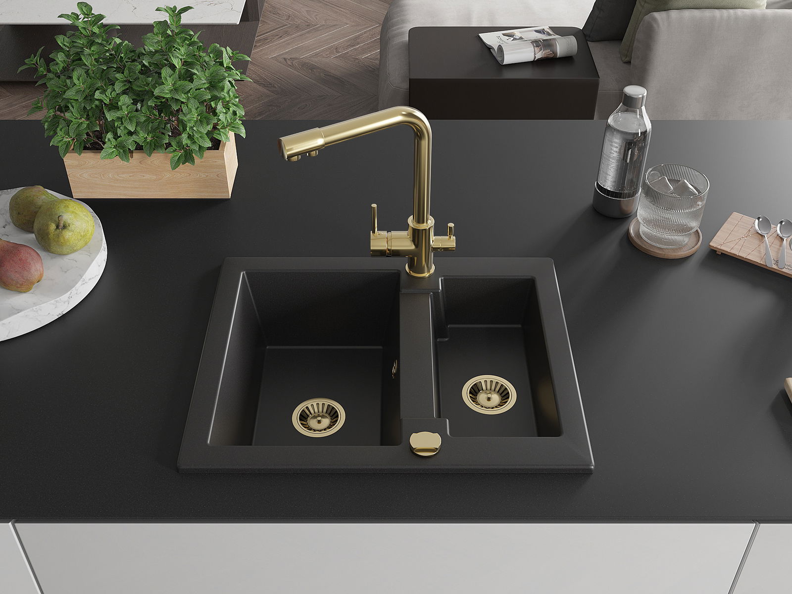 Mexen Carlos granitais izlietne 1,5 nodalījumu ar virtuves jaucējkrānu Duero, melna - 6518-77-671600-50