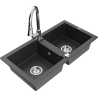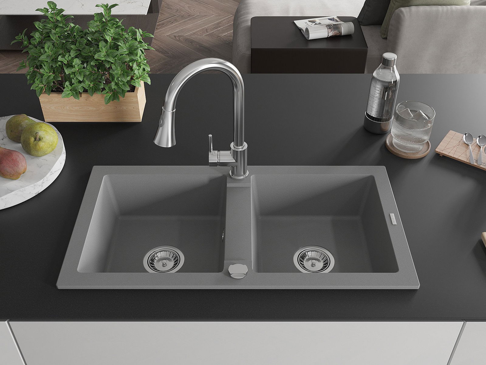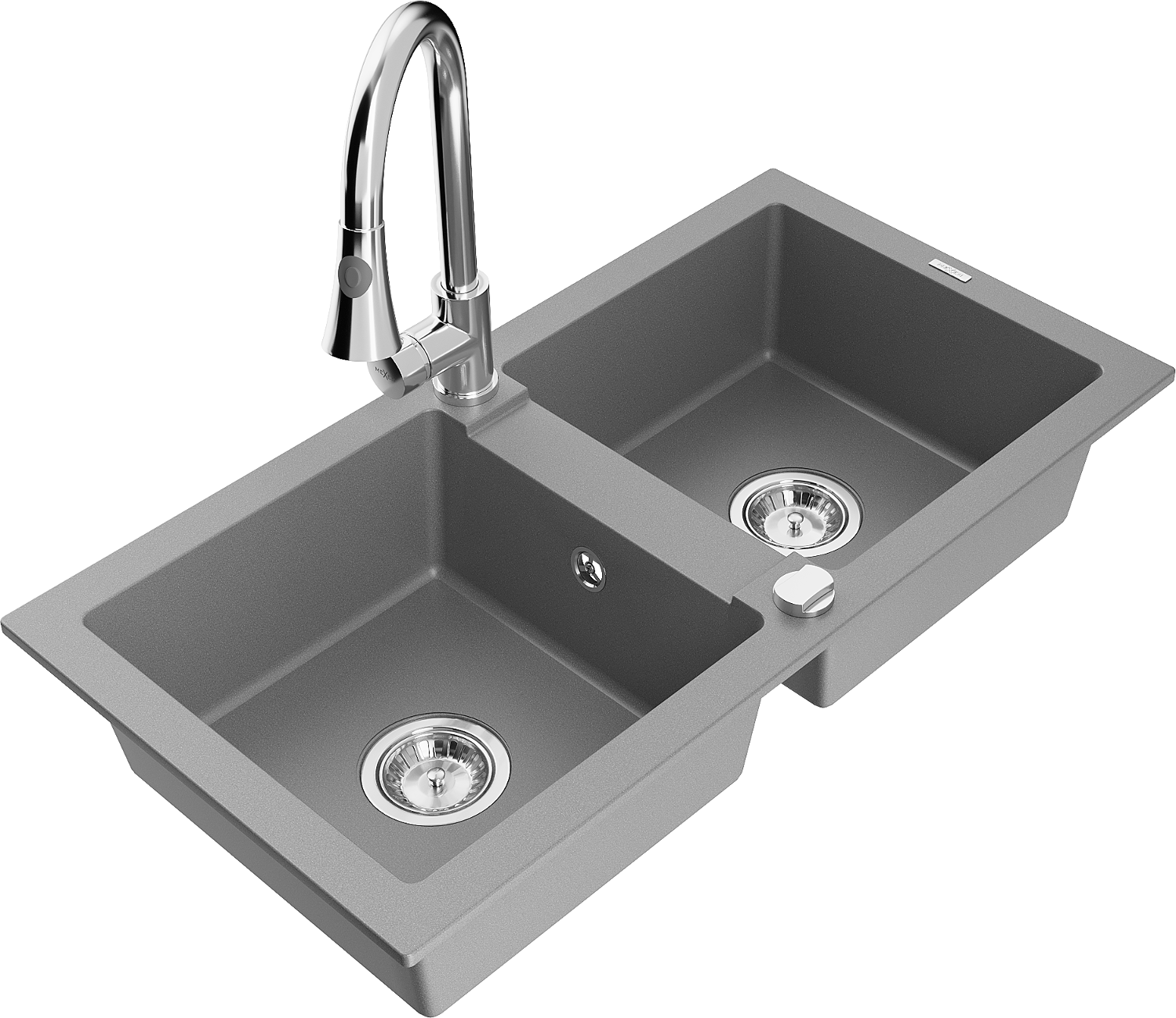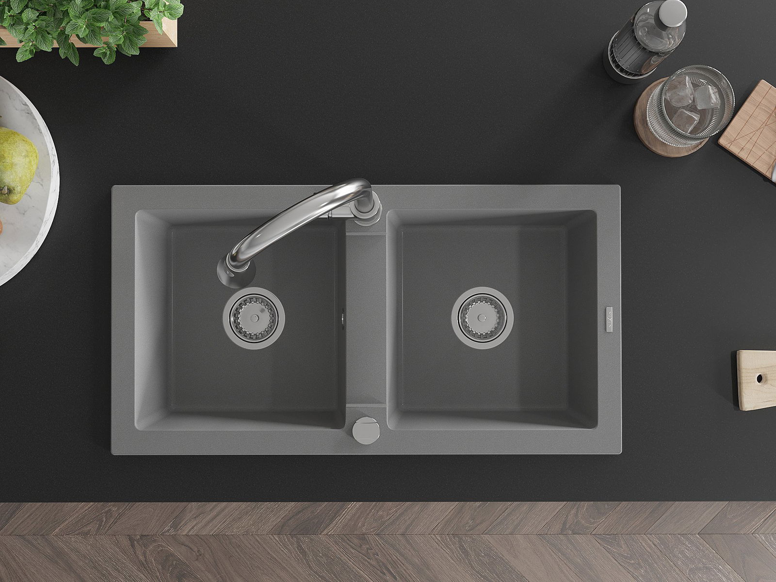 Mexen Mario granitā izlietne ar 2 nodalījumiem un virtuves krānu Elia, pelēka - 6504-71-670101-00