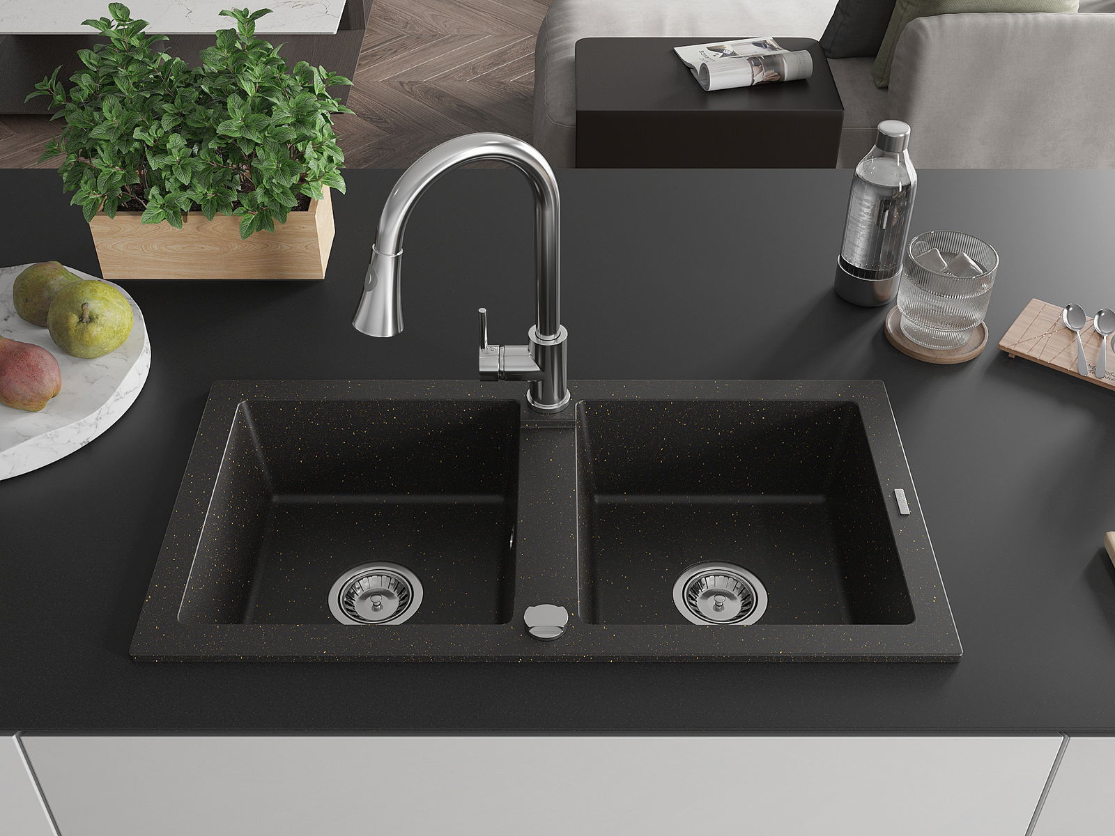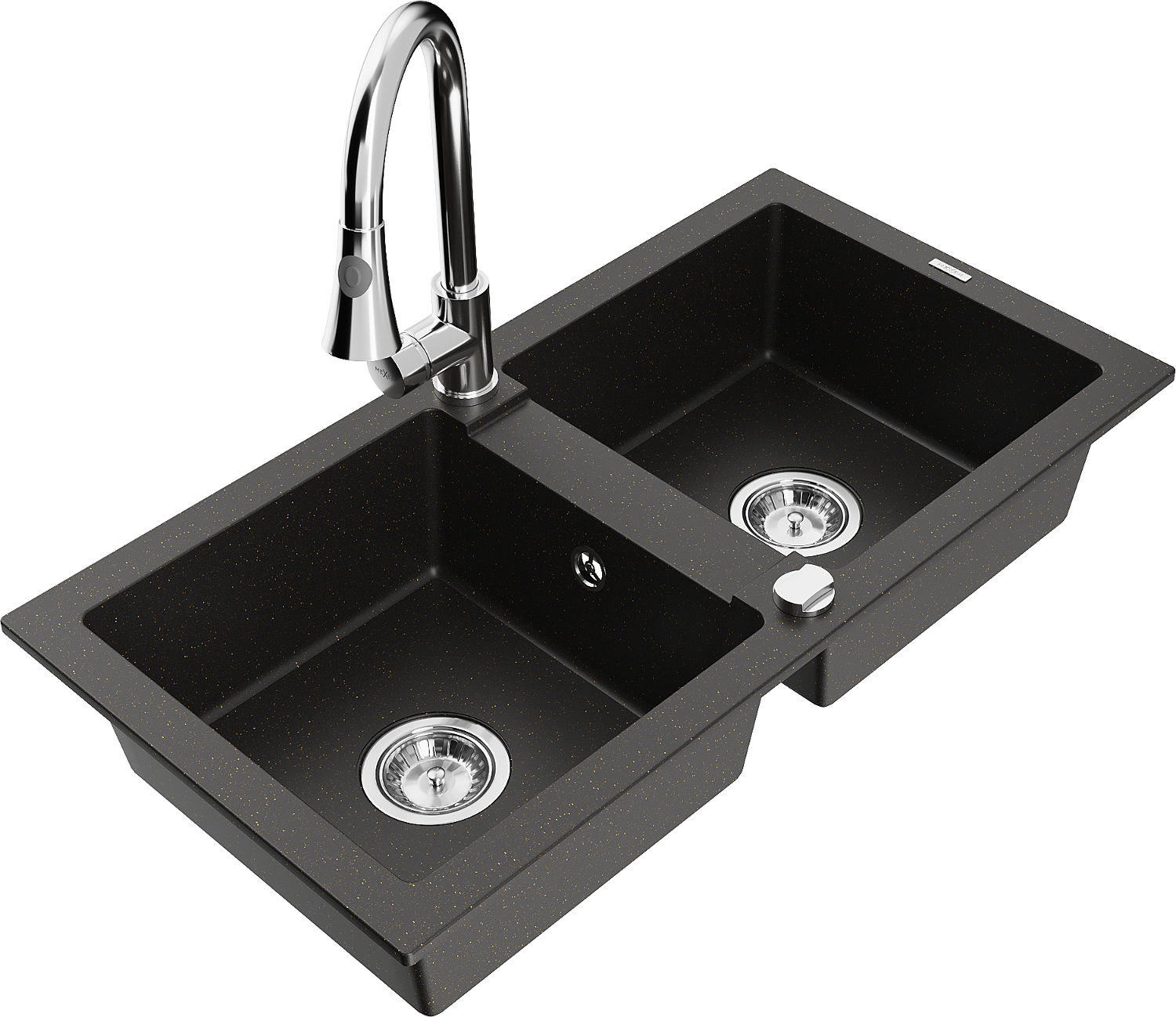 Mexen Mario divpadsmit divpadsmit granīta izlietne ar krānu Elia, melns/zeltaini metālisks - 6504-75-670101-00