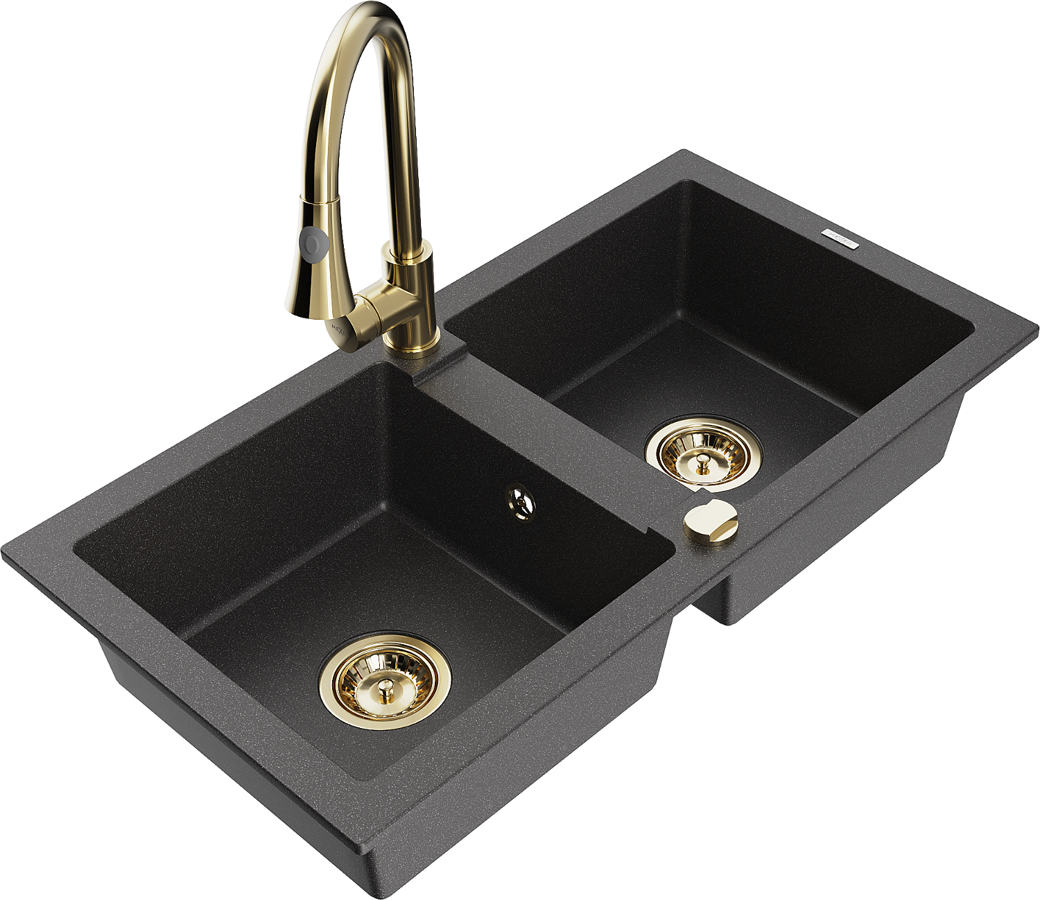Mexen Mario divpadsmitu izlietņu granīta izlietne ar virtuves jaucējkrānu Elia, melns plankumains - 6504-76-670101-50