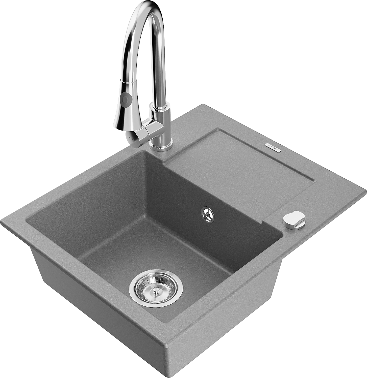 Mexen Enzo granit izlietne ar vienu nodalījumu un noteci un virtuves krānu Elia, pelēka - 6506-71-670101-00