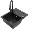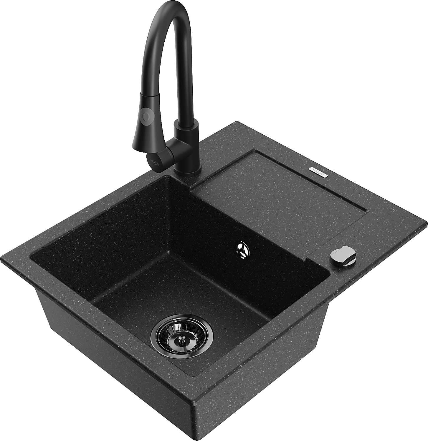 Mexen Enzo granitizlietne ar vienu kameru ar notecētāju un virtuves jaucējkrānu Elia, melns/sudraba metālika