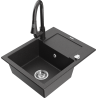 Mexen Enzo granīta izlietne ar vienu nodalījumu, iztekas un virtuves jaucējkrānu Elia, melna - 6506-77-670101-00