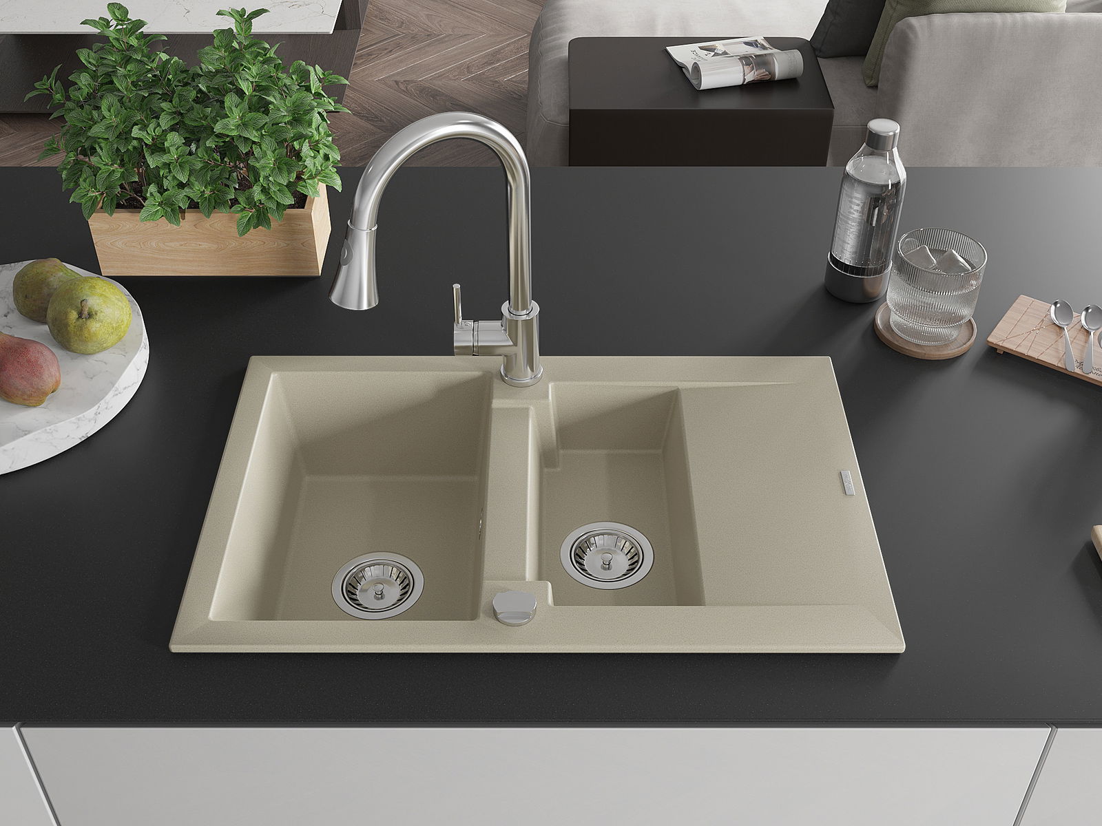 Izlietnes virsma ir izturīga pret traipiem un krāsas izmaiņām, tāpēc to ir viegli uzturēt tīru un tā saglabā savu krāsu ilgu lietošanas laiku. Estētiski un praktiski papildina jebkuru virtuvi.