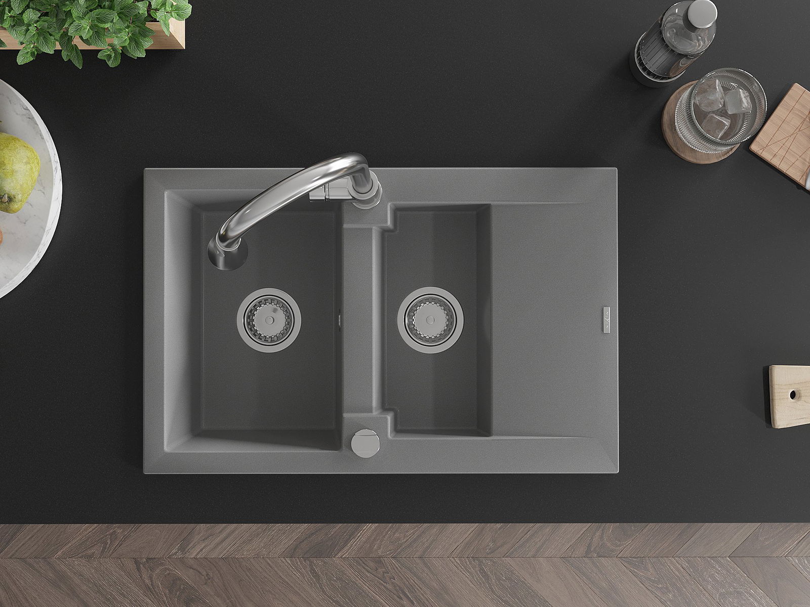Mexen Gaspar Granitā izlietne 1,5 nodalījuma ar notekas un virtuves jaucējkrānu Elia, pelēka - 6507-71-670101-00