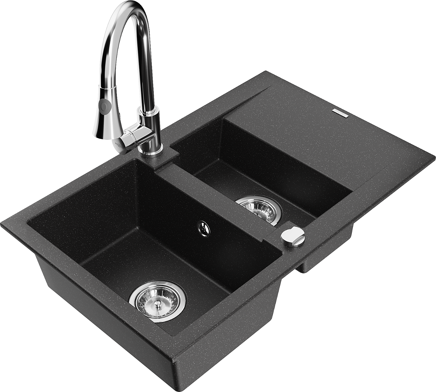 Mexen Gaspar granitizlietne 1,5 nodalījumu ar notecēšanas un virtuves jaucēju Elia, melns/sudraba metālika - 6507-73-670101-00