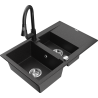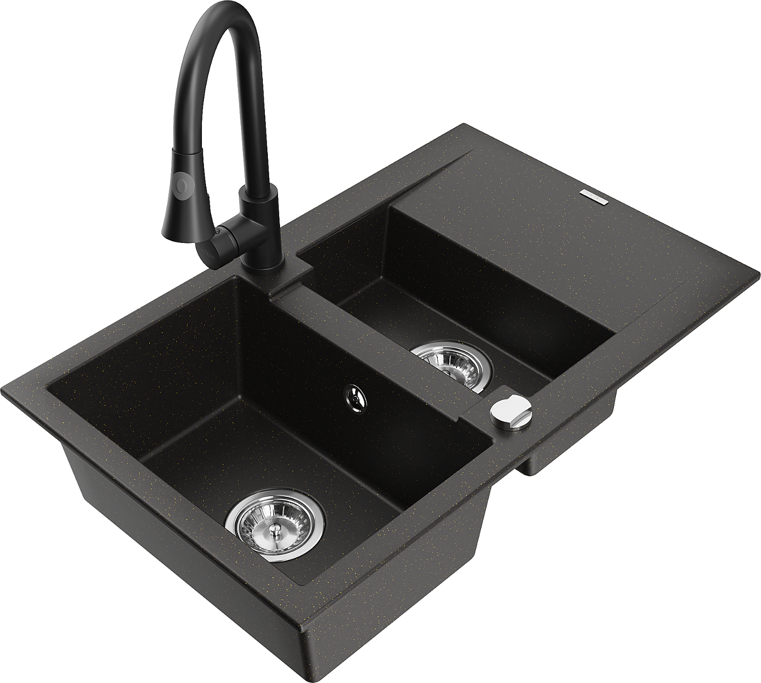 Mexen Gaspar granitizlietne izlietne ar 1,5 nodalījumu, žāvētāju un virtuves krānu Elia, melns/zelta metālisks