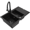 Mexen Gaspar 1,5 nodalījumu granīta izlietne ar noteces virsmu un virtuves bateriju Elia, melns/zeltains metāliks