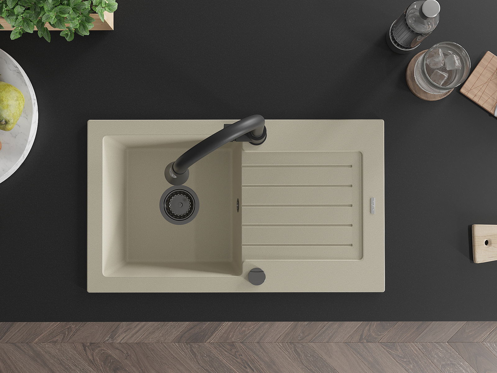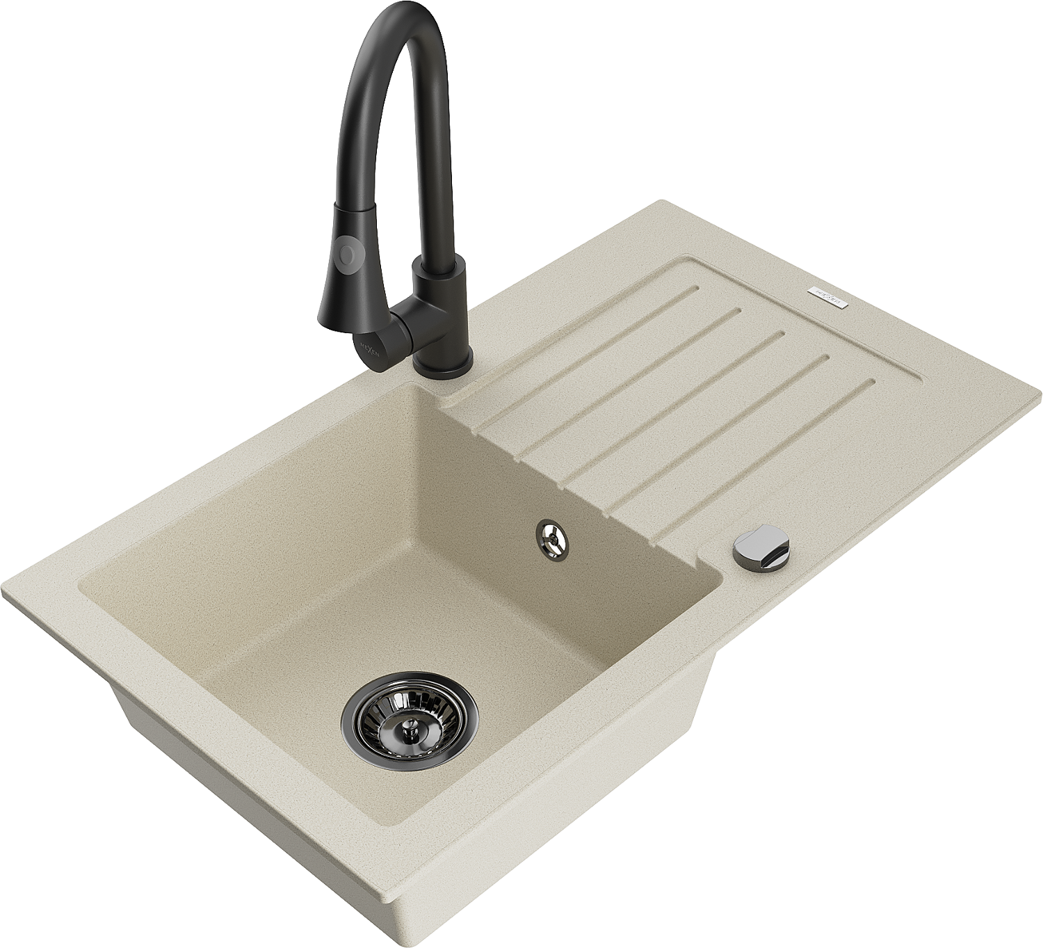 Mexen Pablo granitizlietne ar vienu nodalījumu un noteces vietu, un virtuves jaucējkrāns Elia, bēša krāsa - 6510-69-670101-70
