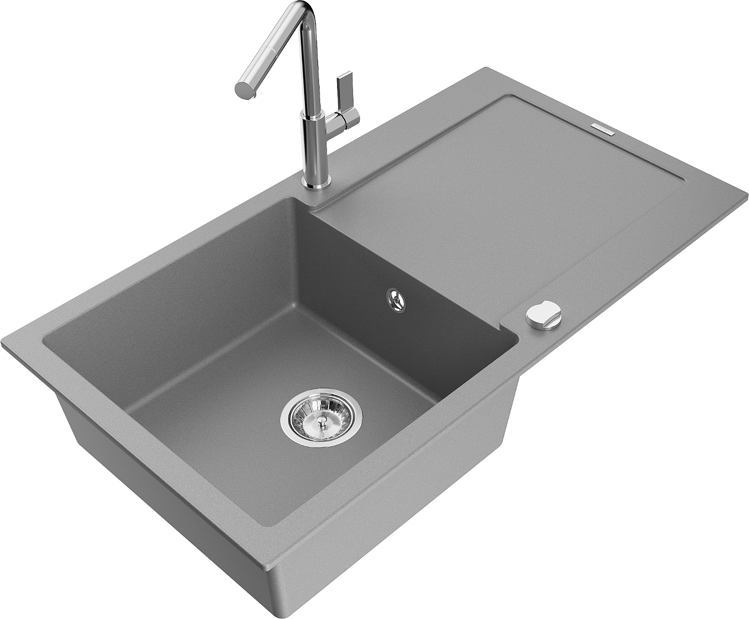 Mexen Leo granīta izlietne ar 1 nodalījumu, noteces un virtuves jaucējkrānu Flora, pelēkā krāsā - 6501-71-670401-00