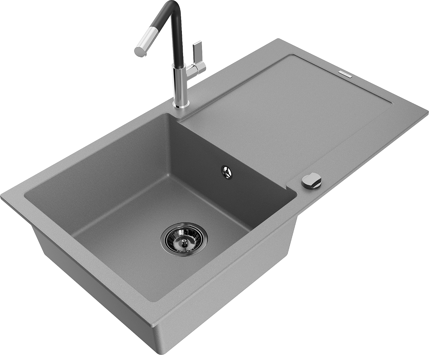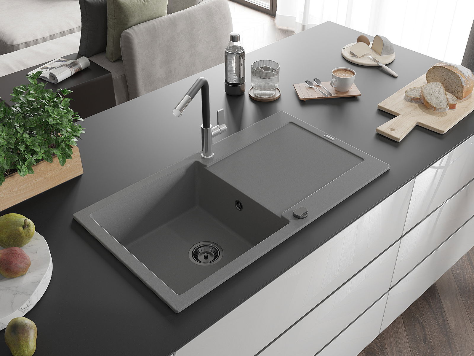 Mexen Leo granitizlietne ar vienu nodalījumu un drenāžu, ar virtuves jaucējkrānu Flora, pelēka - 6501-71-670401-07-B