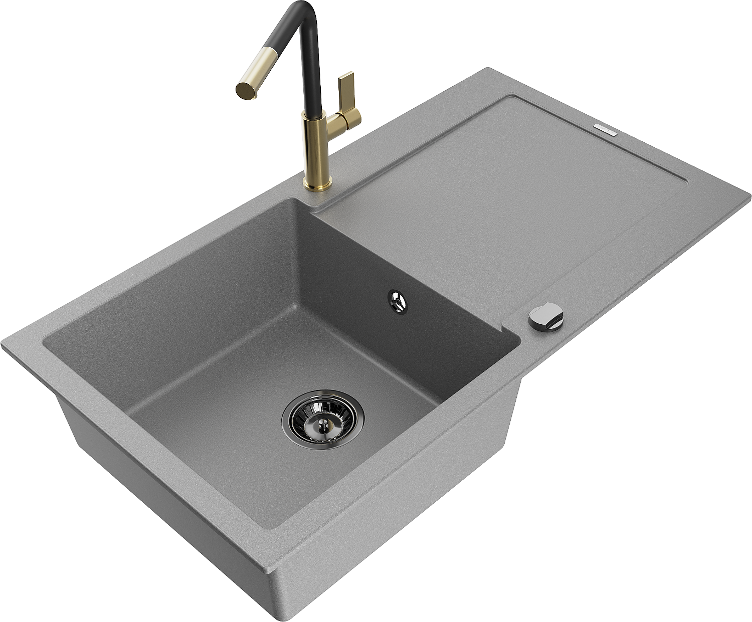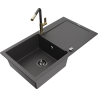 Mexen Leo granitizlietne ar vienu nodalījumu un notecinātāju un virtuves jaucējkrānu Flora, pelēka - 6501-71-670401-57-B