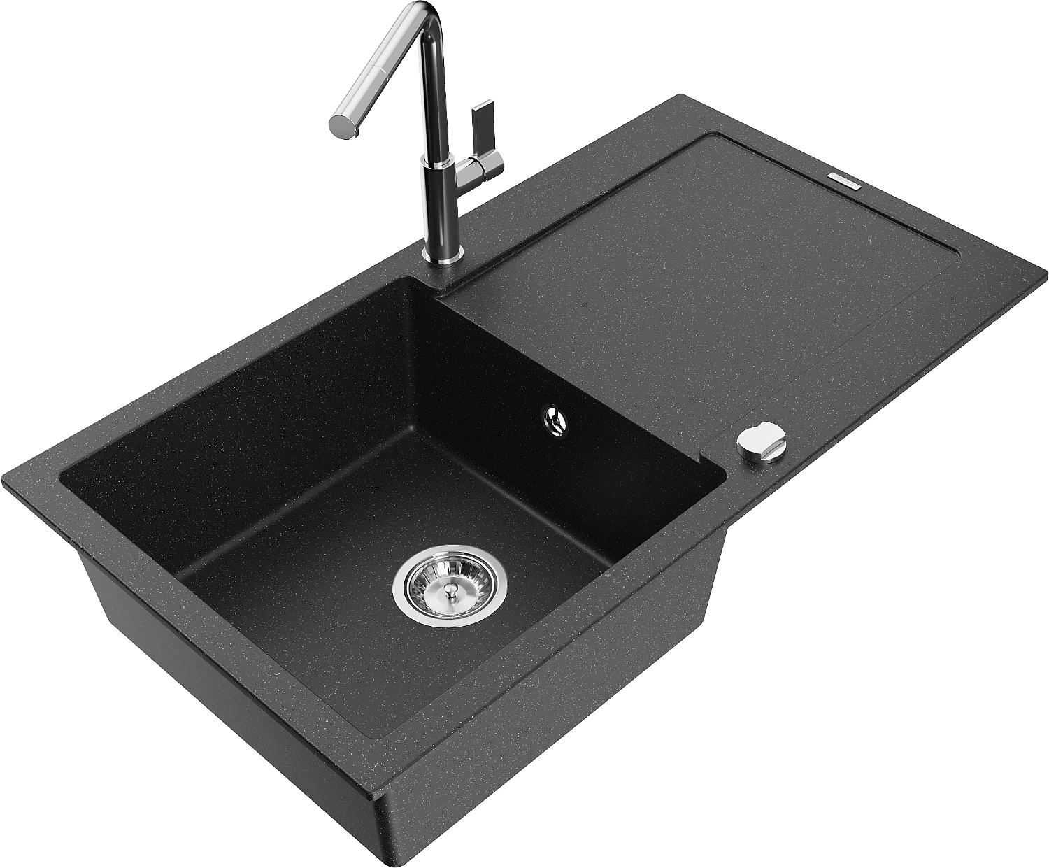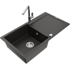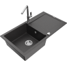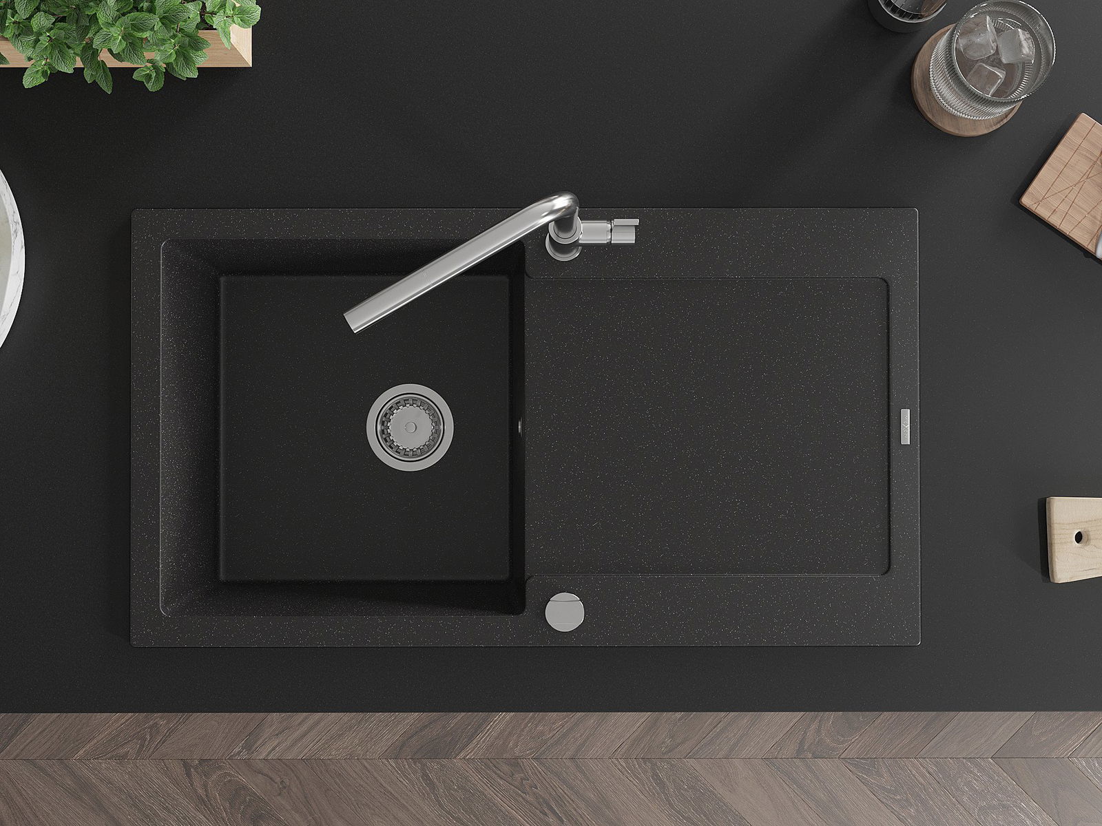 Mexen Leo granīta izlietne ar vienu kameru, noteku un virtuvīti Flora, melna/sudraba metālika - 6501-73-670401-00