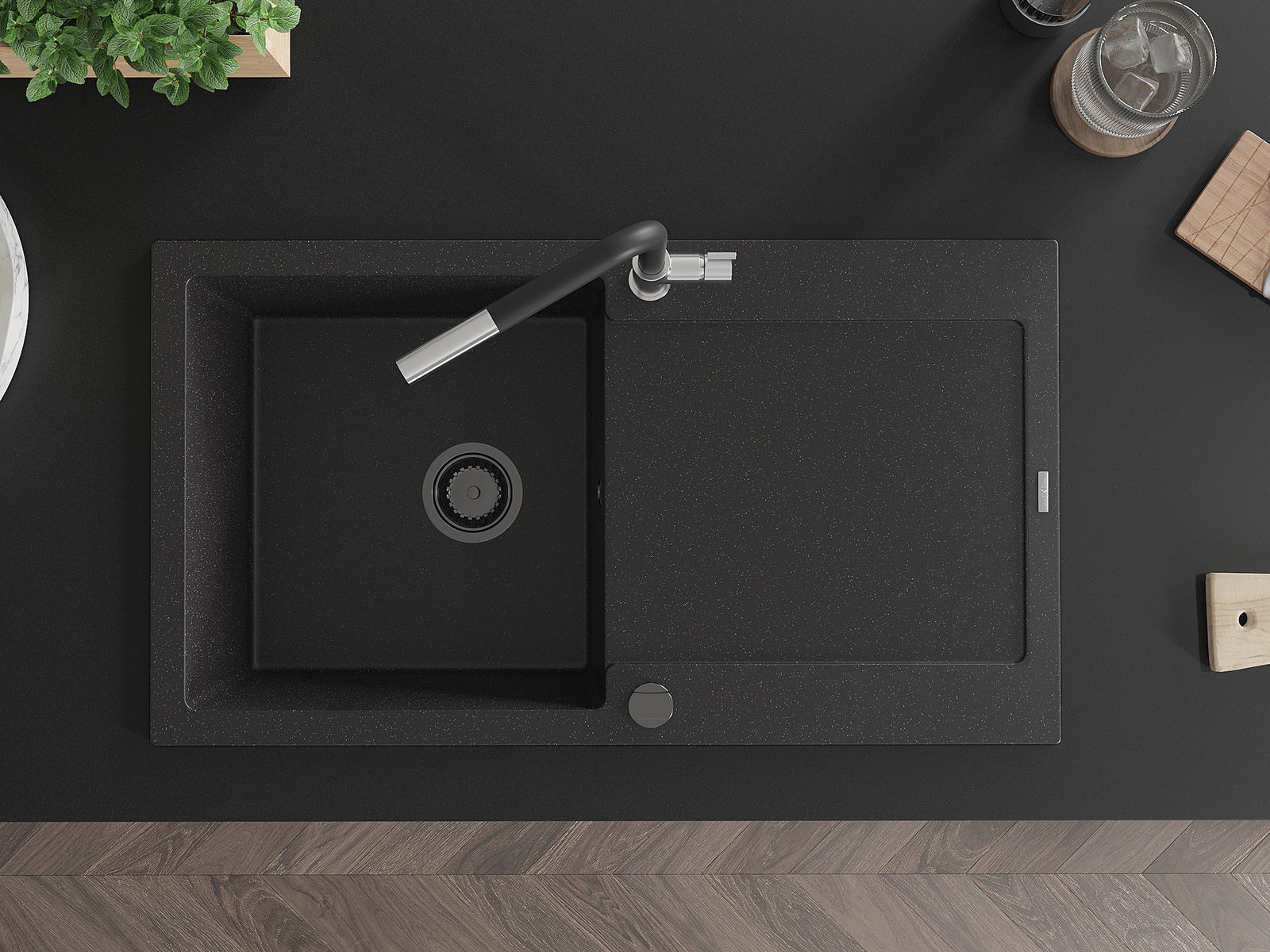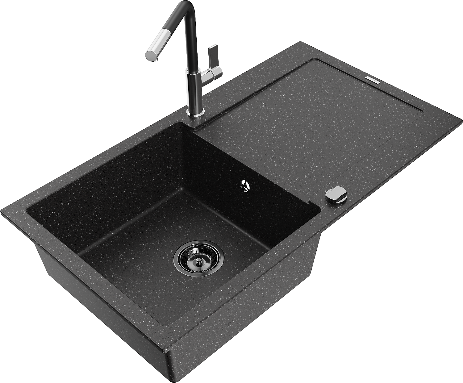 Mexen Leo vienas granito izlietnes mazgāšanas dēlis ar izlietnes jaucējkrānu Flora, melna/sudraba metālika - 6501-73-670401-07-B