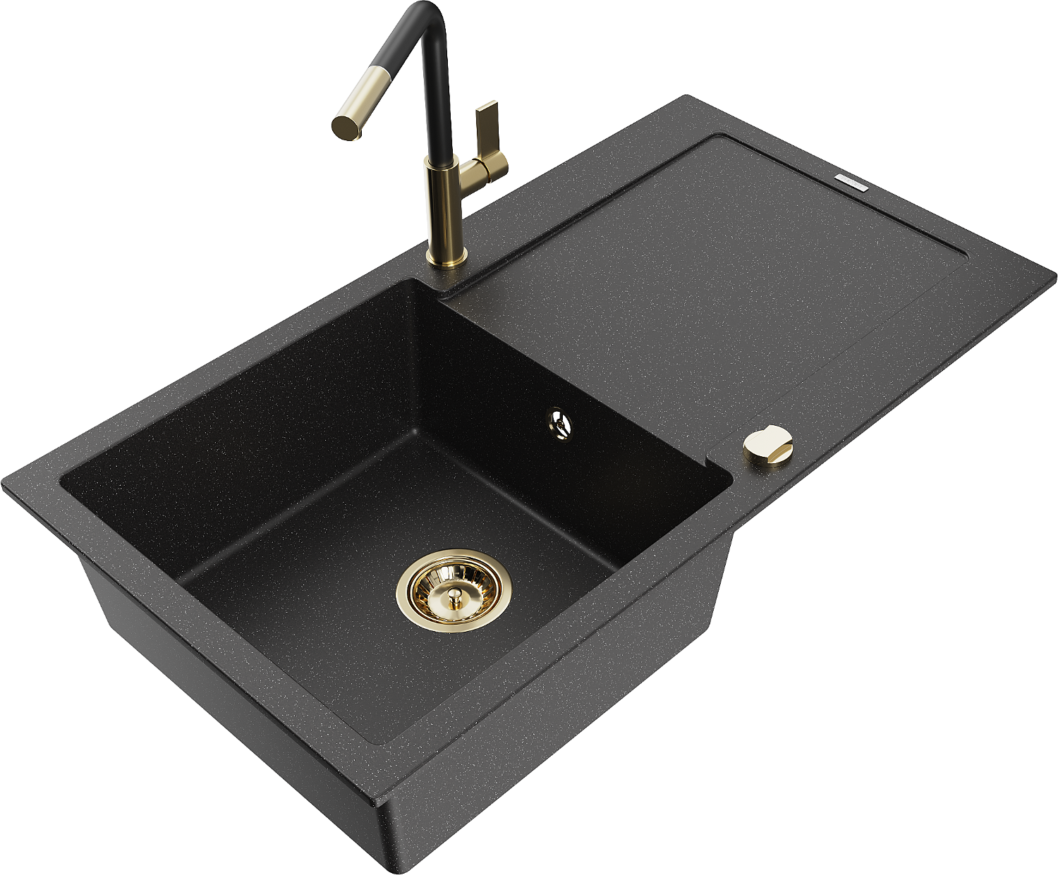 Mexen Leo granitizlietne ar vienu kameru ar žāvētāju un virtuves jaucējkrānu Flora, melna/sudraba metālika - 6501-73-670401-57-G