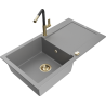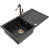 Mexen Leo 1 nodalījuma granīta izlietne ar noteces un virtuves jaucējkrānu Flora, melns/zelts metāliks