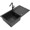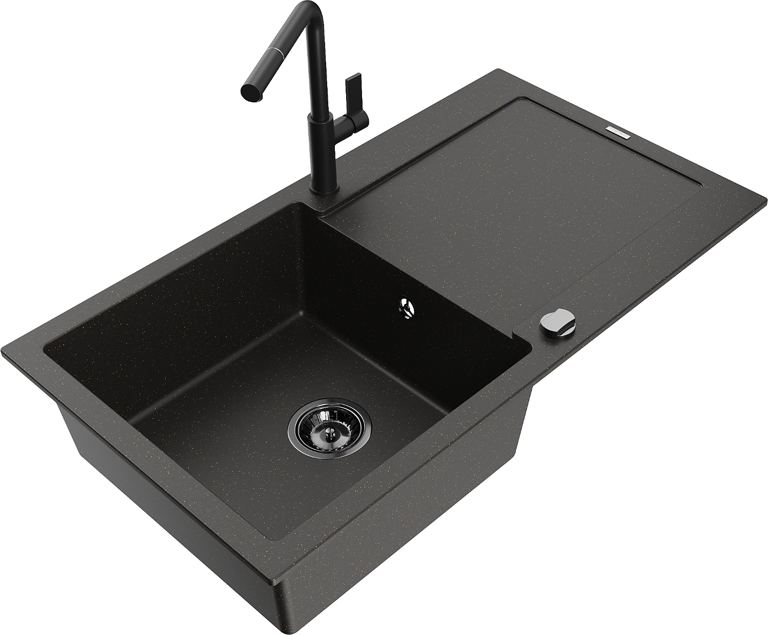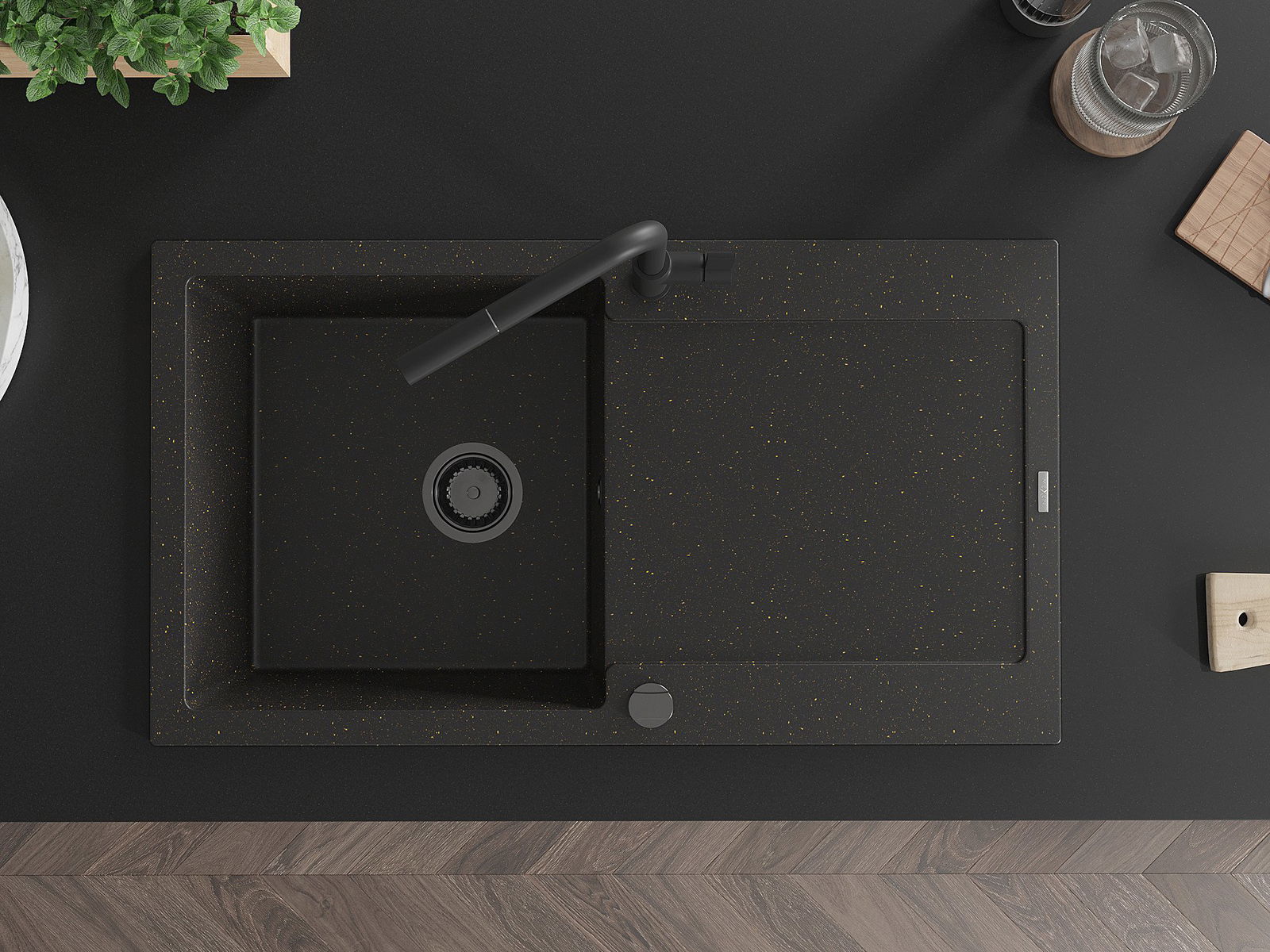 Mexen Leo granitizlietne 1 sekcijas izlietne ar noteku un virtuves jaucējkrānu Flora, melns/zeltīts metālisks