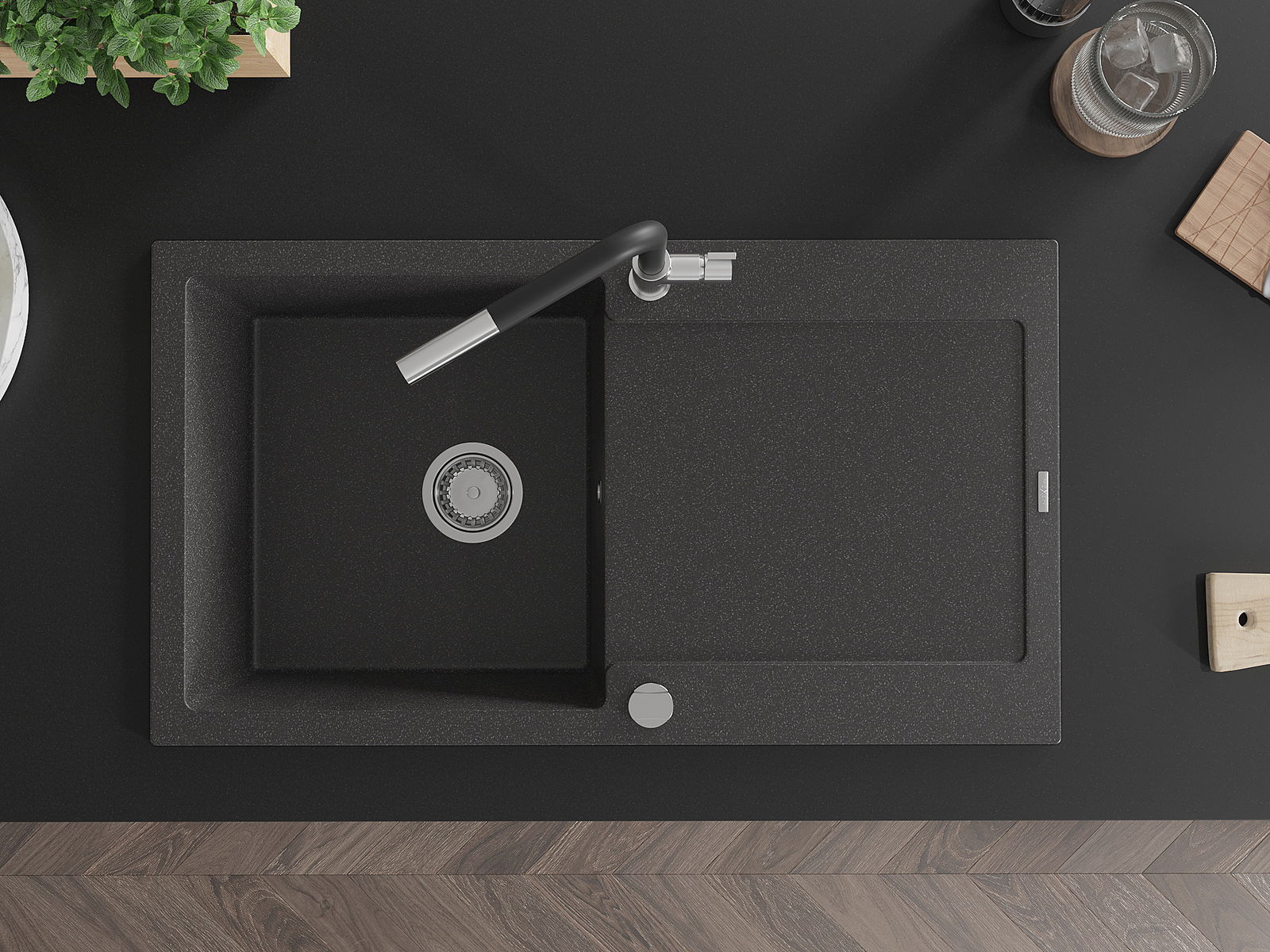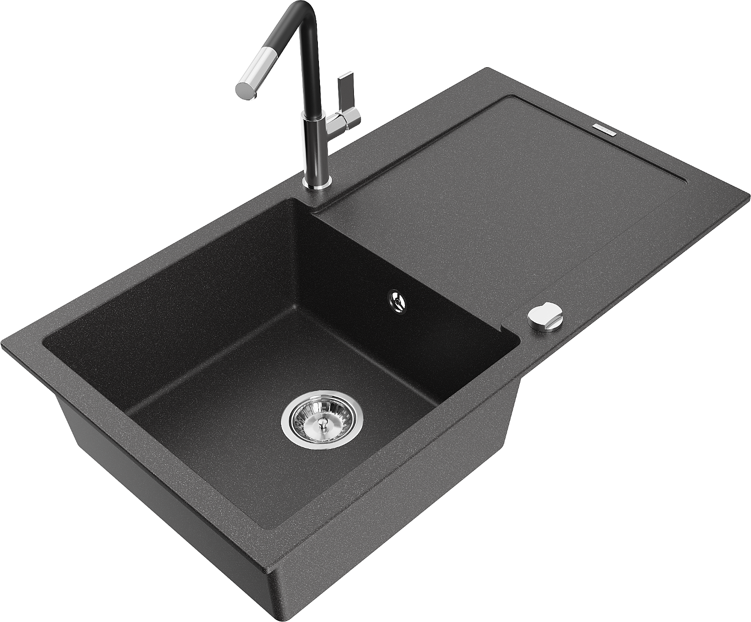 Mexen Leo granit izlietne ar vienu nodalījumu un noteku, un virtuves jaucējkrānu Flora, durstu melna - 6501-76-670401-07