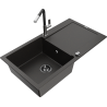 Mexen Leo granit izlietne ar vienu nodalījumu un noteci un Flora virtuves jaucējkrānu, melna raiba - 6501-76-670401-07-B