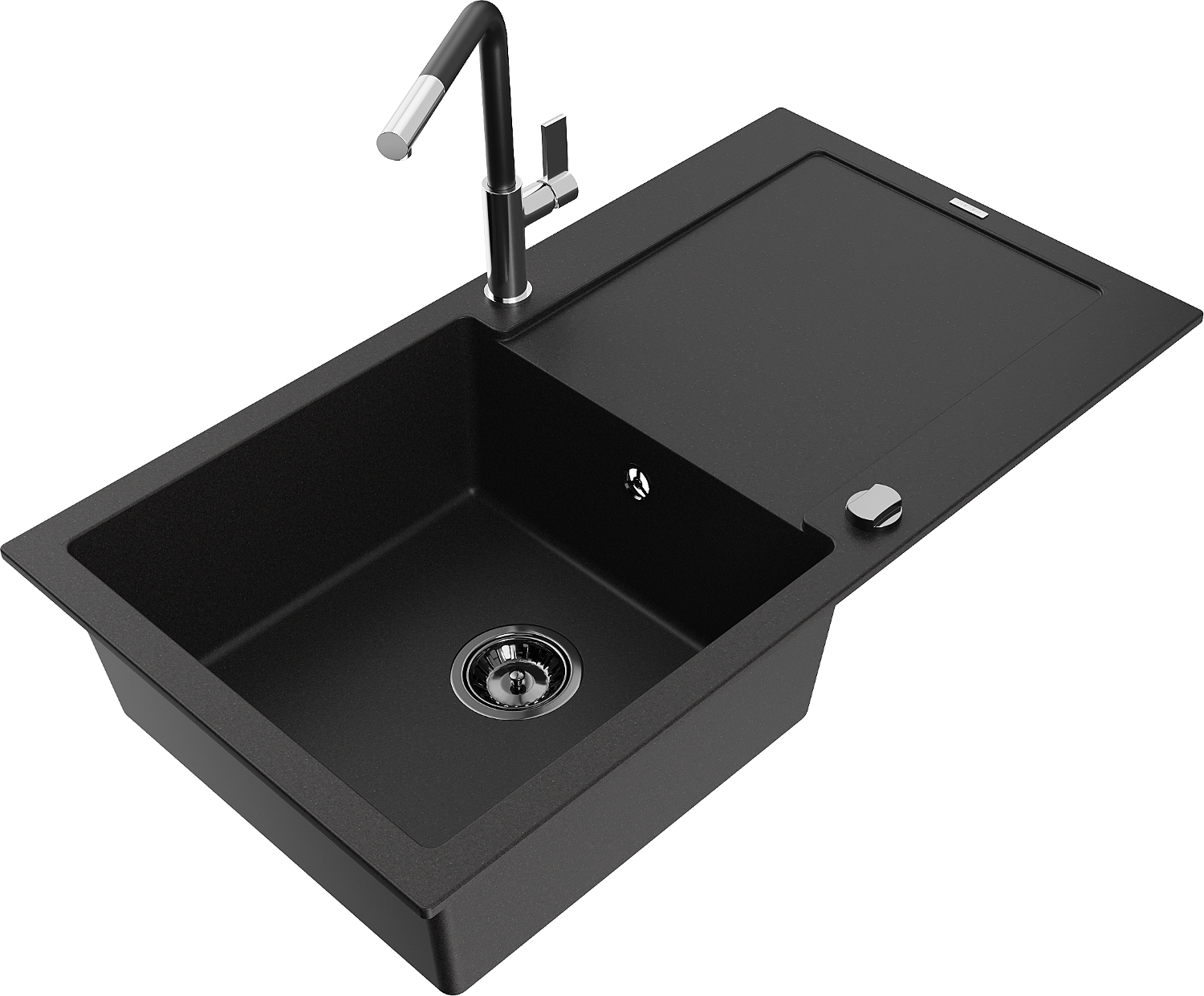 Mexen Leo granitē izlietne ar 1 nodalījumu un noteces plāksni un virtuves krānu Flora, melna - 6501-77-670401-07-B