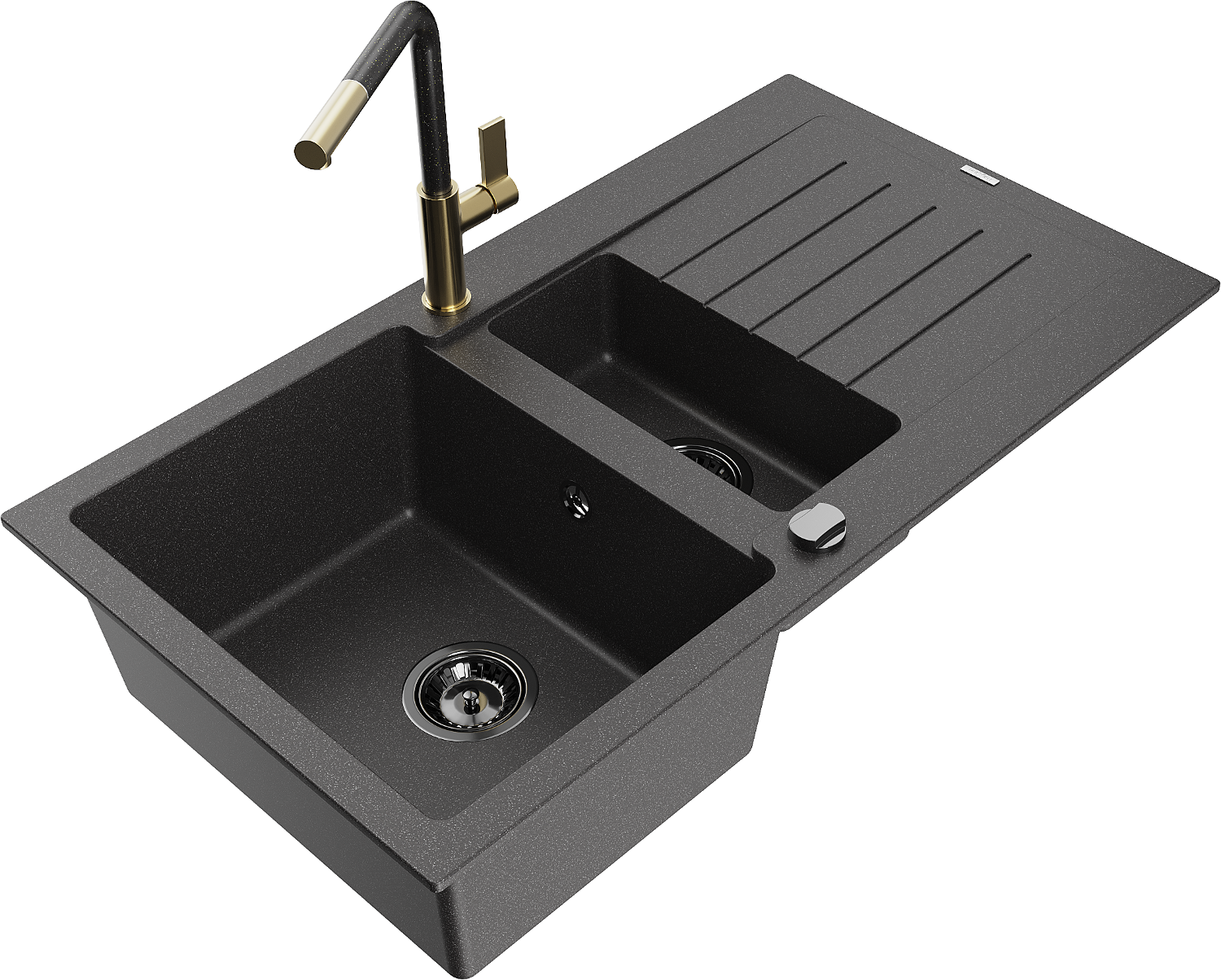 Mexen Matias granitizlietne ar 1,5 kameru, notekas un Flora virtuves jaucējkrānu, melna ar plankumiem - 6502-76-670401-75-B