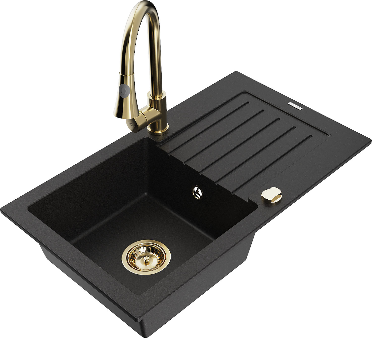 Mexen Pablo granitā izlietne ar vienu nodalījumu, noteci un virtuves krānu Elia, melna - 6510-77-670101-50
