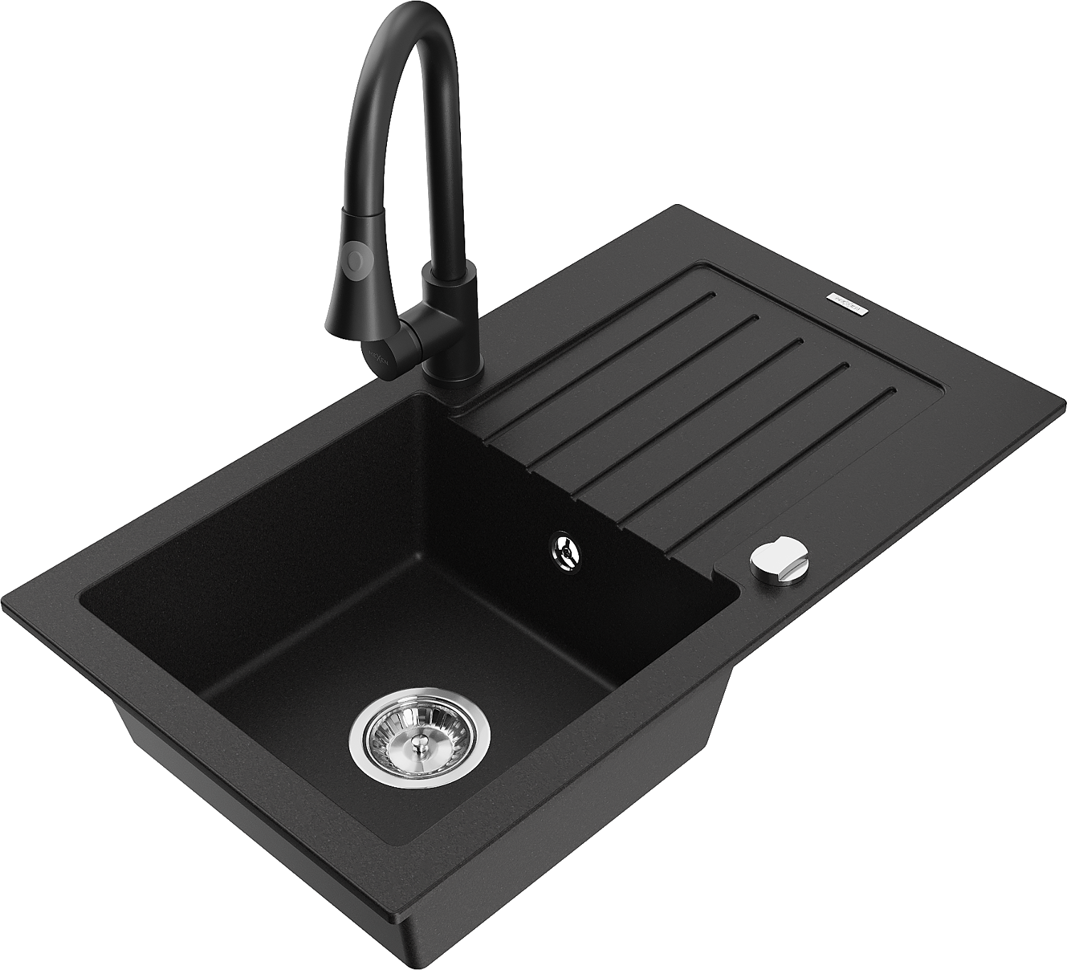 Mexen Pablo granitizlietne vienas kameras ar noteces vietu un virtuves jaucējkrānu Elia, melns - 6510-77-670101-70