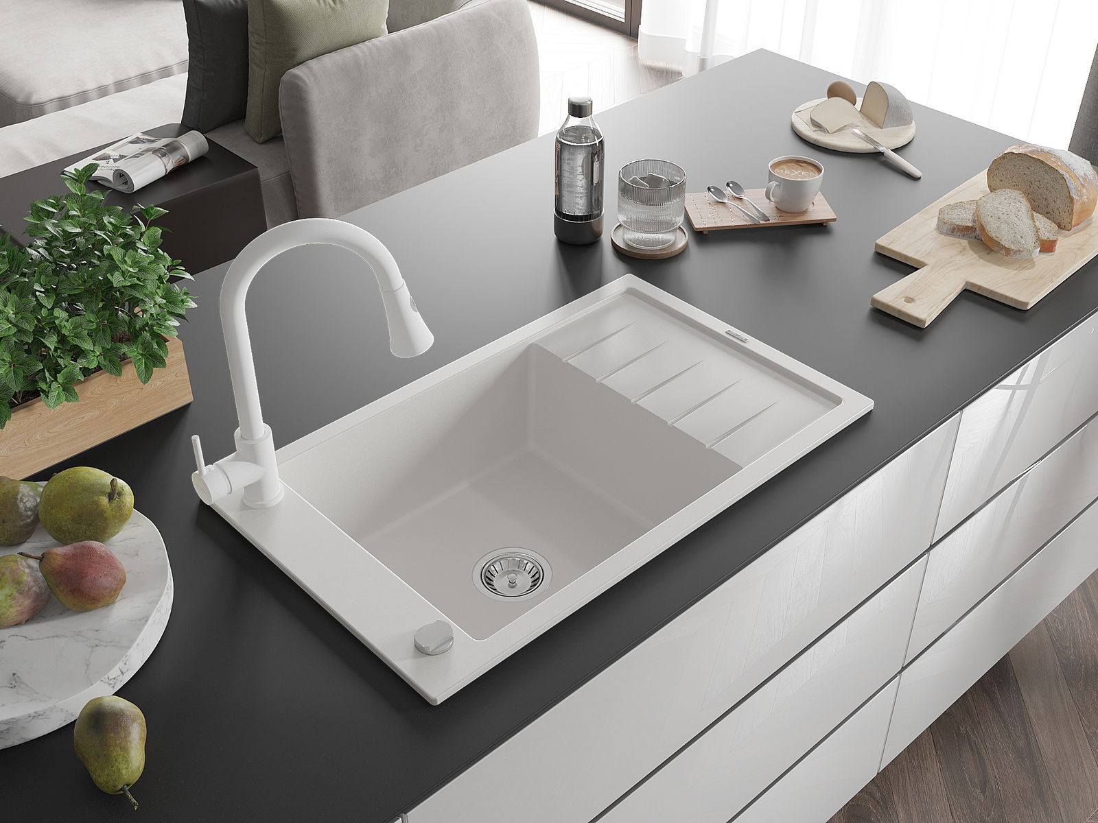 Izlietnes virsma ir izturīga pret traipiem un krāsas izmaiņām, tāpēc to ir viegli uzturēt tīru un tā saglabā savu krāsu ilgu lietošanas laiku. Estētiski un praktiski papildina jebkuru virtuvi.