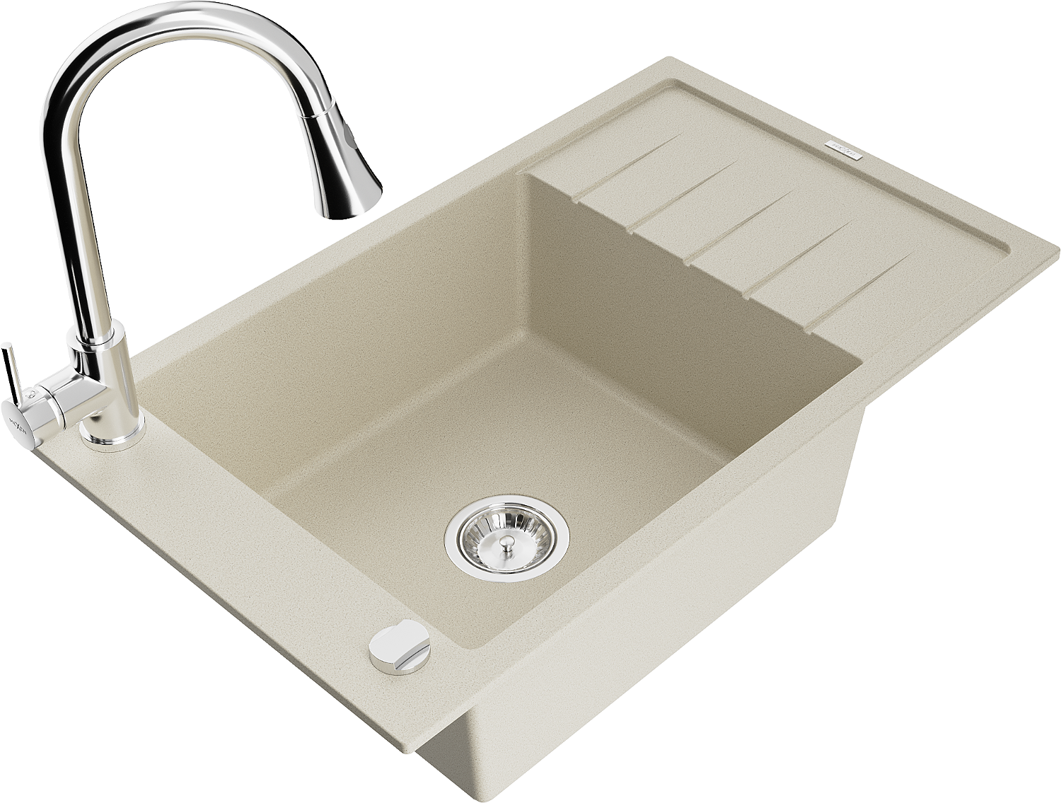 Mexen Elias granitāra izlietne ar vienu nodalījumu, noteces zonu un virtuves jaucējkrānu Elia, bēša - 6511-69-670101-00