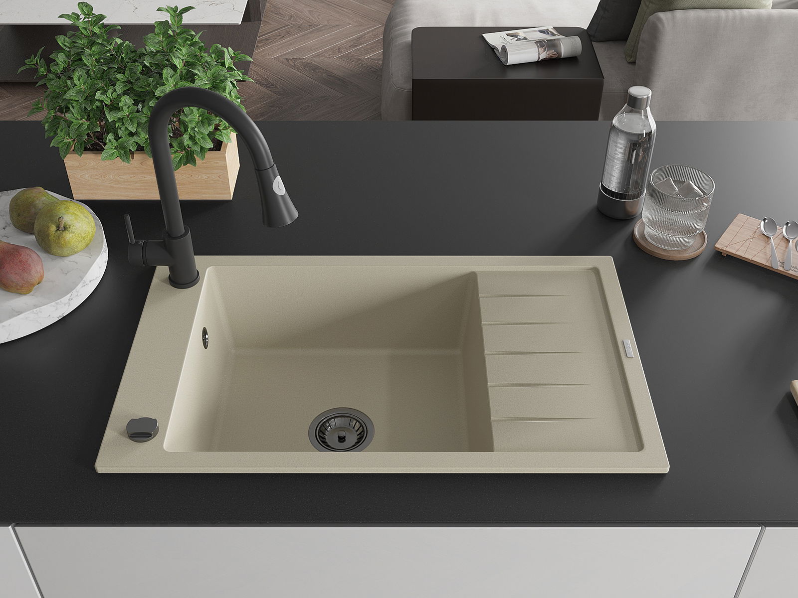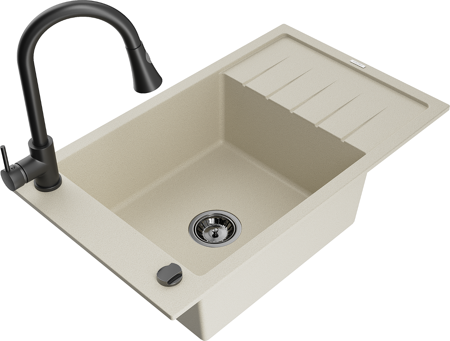 Mexen Elias granitizlietne ar vienu nodalījumu ar notekreni un virtuves jaucējkrānu Elia, bēšs - 6511-69-670101-70