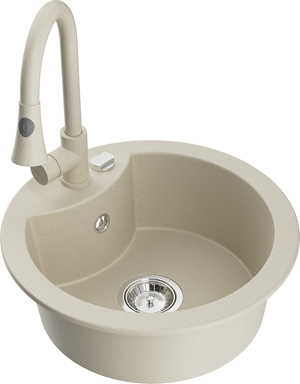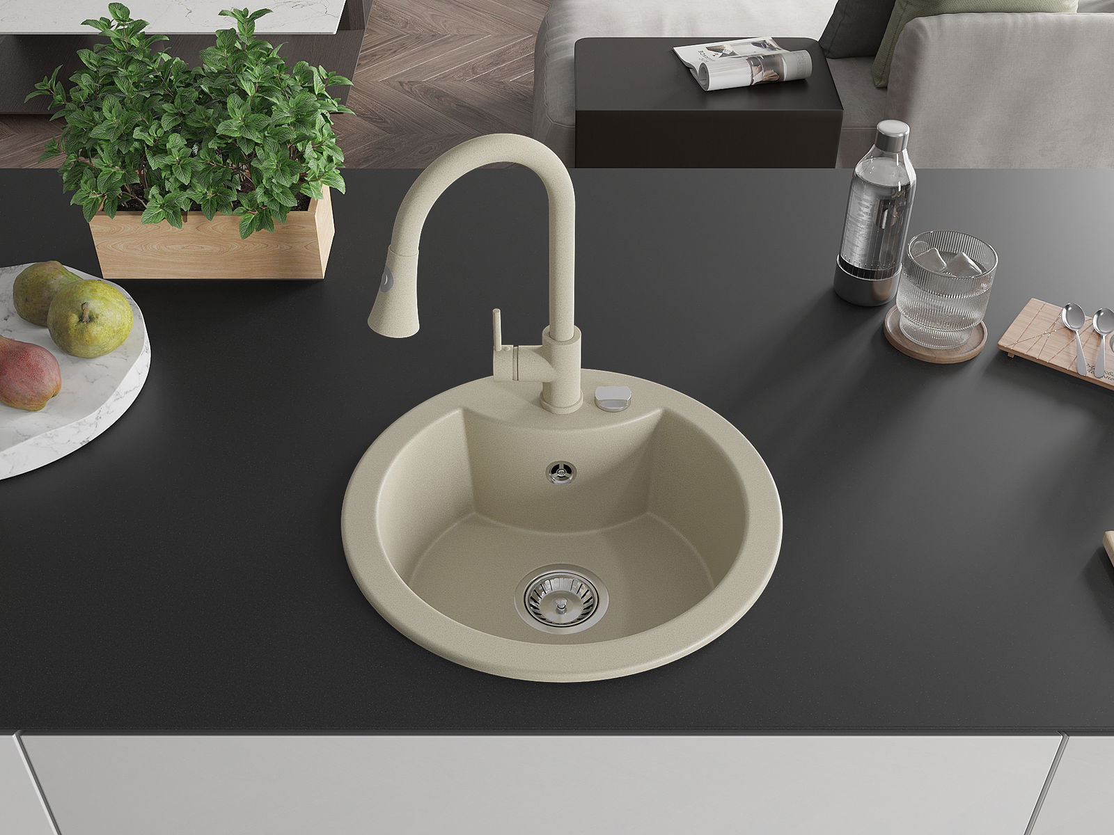 Mexen Diego granitē izlietne ar vienu nodalījumu un virtuves jaucējkrānu Elia, bēša - 6512-69-670101-69