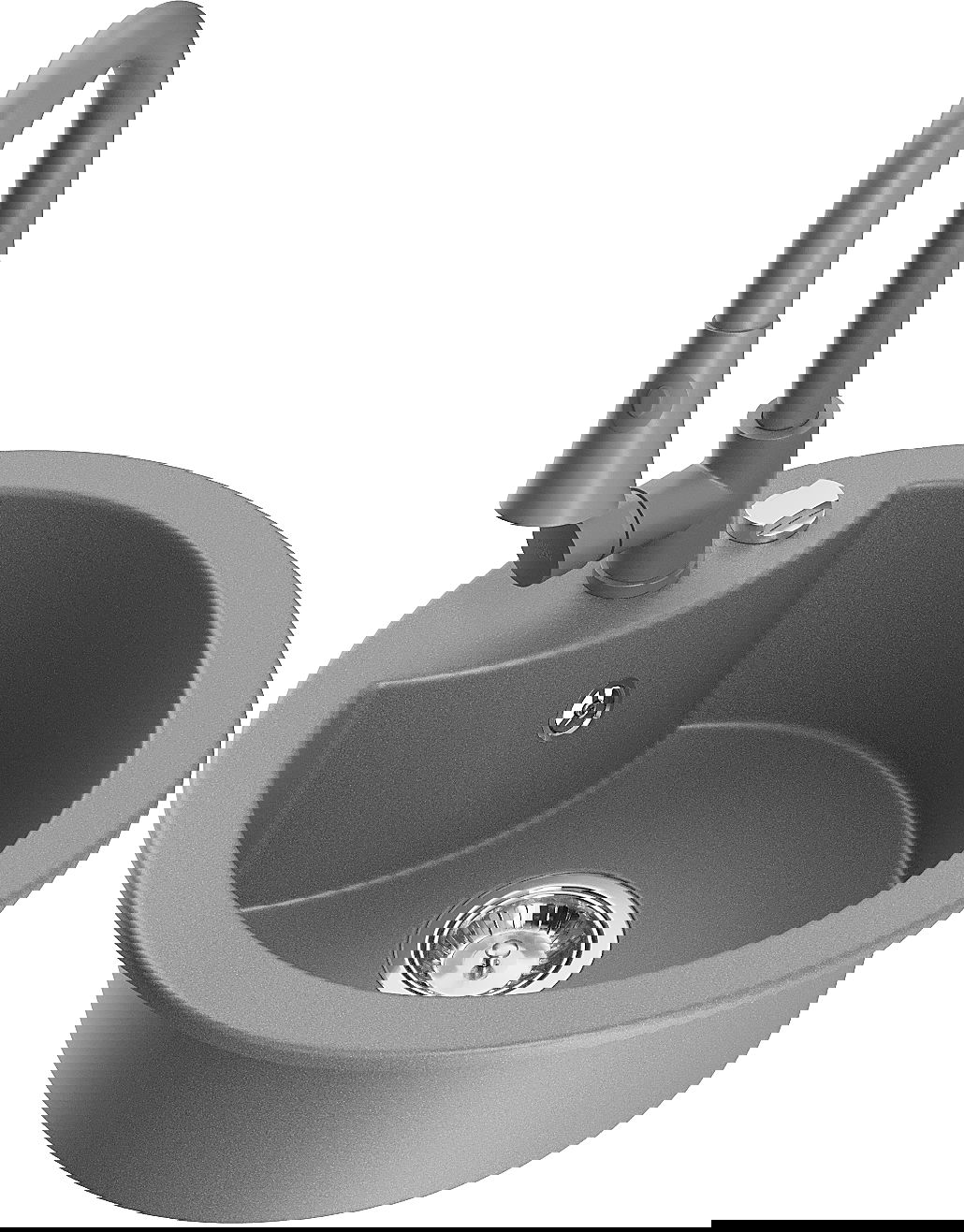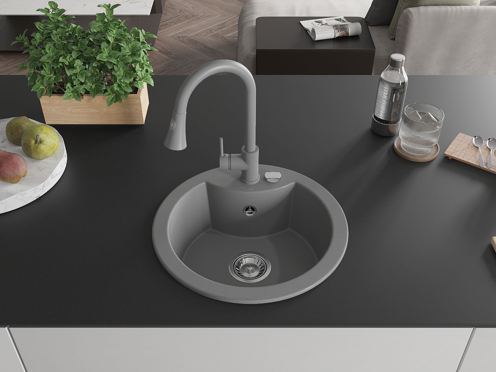 Mexen Diego granit izlietne ar vienu nodalījumu un virtuves jaucējkrānu Elia, pelēka - 6512-71-670101-71