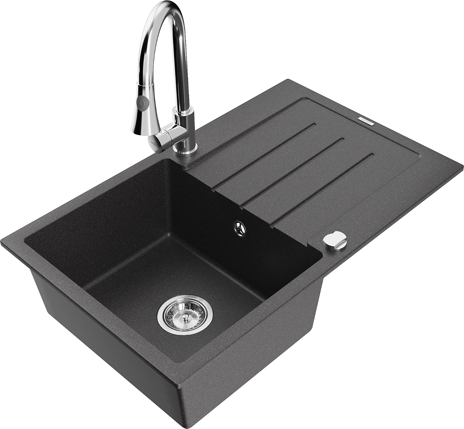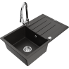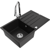 Mexen Bruno granīta izlietne ar vienu nodalījumu, noteces un virtuves jaucējkrānu Elia, melna ar plankumiem