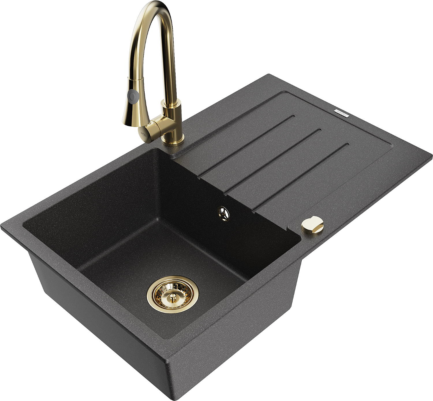 Mexen Bruno Granit izlietne ar vienu nodalījumu, ar noteci un virtuves jaucējkrānu Elia, melna ar plankumiem - 6513-76-670101-50