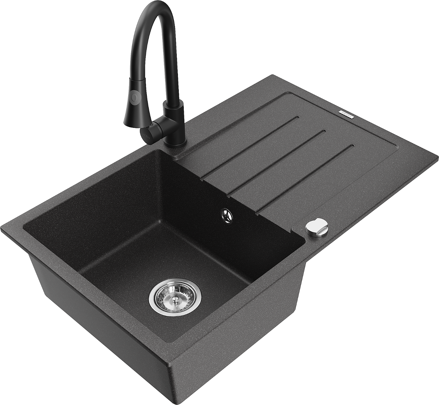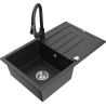 Mexen Bruno granitizlietne ar vienu nodalījumu, notecinātāju un virtuves jaucējkrānu Elia, melns ar punktiem - 6513-76-670101-70