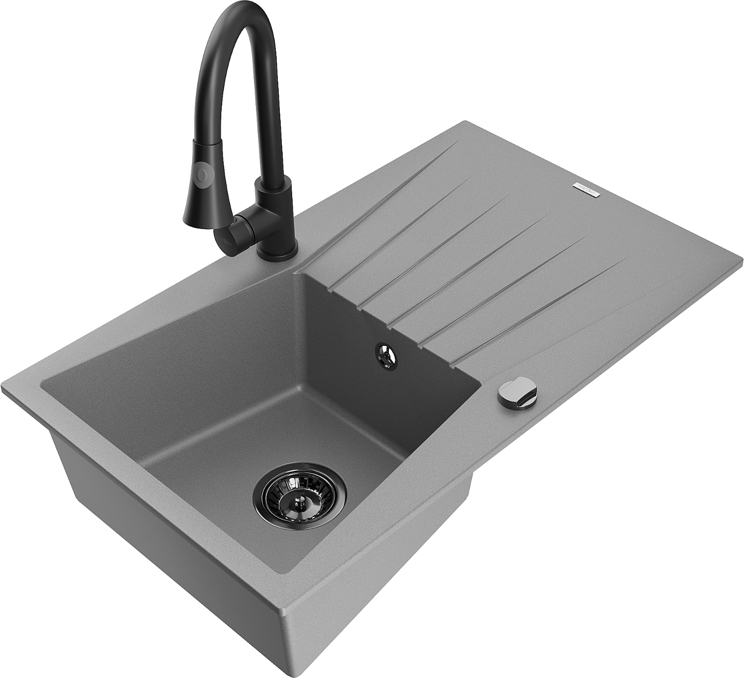 Mexen Cesar granitizlietne 1-kameras ar noteku un virtuves jaucējkrānu Elia, pelēka - 6514-71-670101-70-B