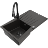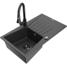 Mexen Cesar granitizlietne ar vienu nodalījumu, notecēšanas virsmu un virtuves jaucējkrānu Elia, melns/sudraba metālisks