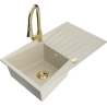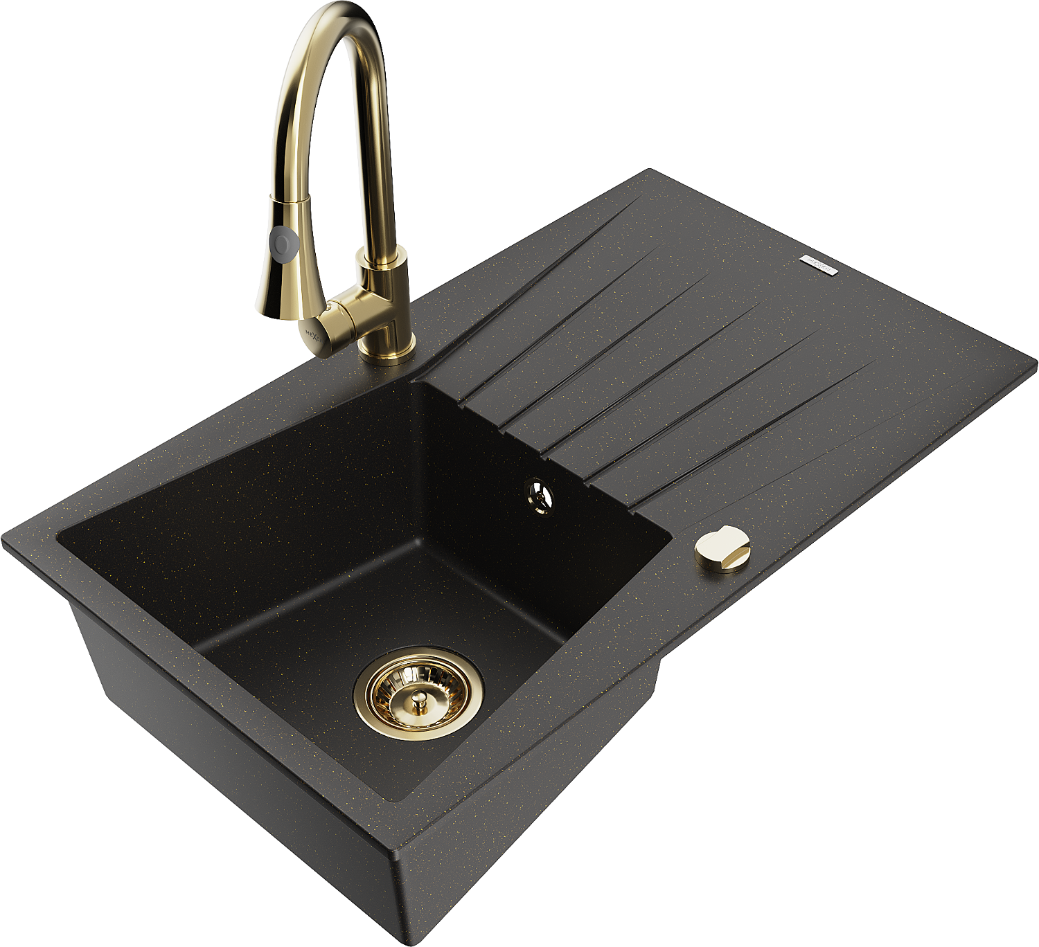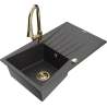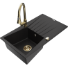 Mexen Cesar granitizlietne ar vienu nodalījumu, noteces vietu un virtuves jaucējkrānu Elia, melns/zeltains metālisks