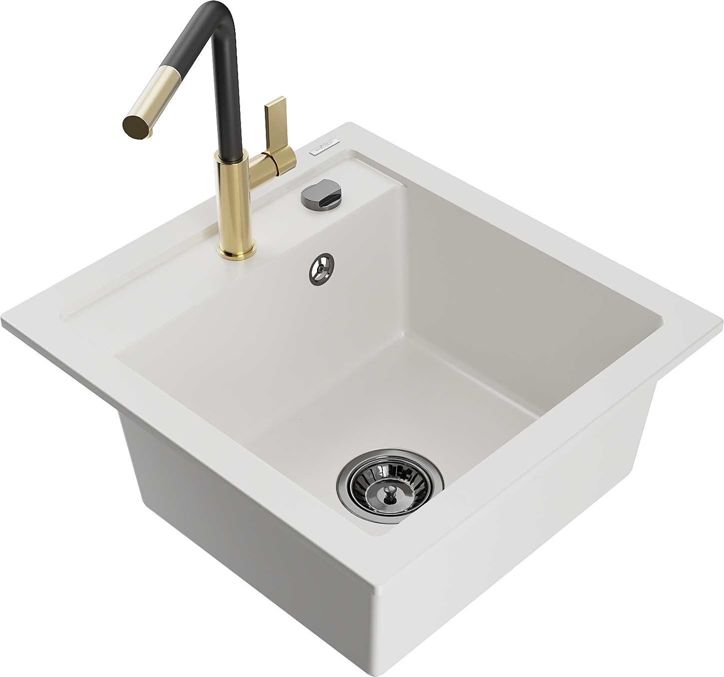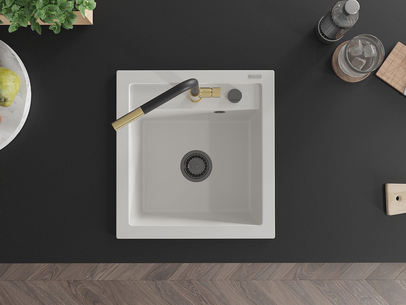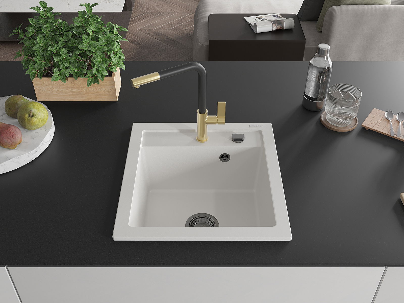 Mexen Vito granitizlietne izlietne ar vienu nodalījumu un virtuves jaucējkrānu Flora, balta - 6503-20-670401-57-B