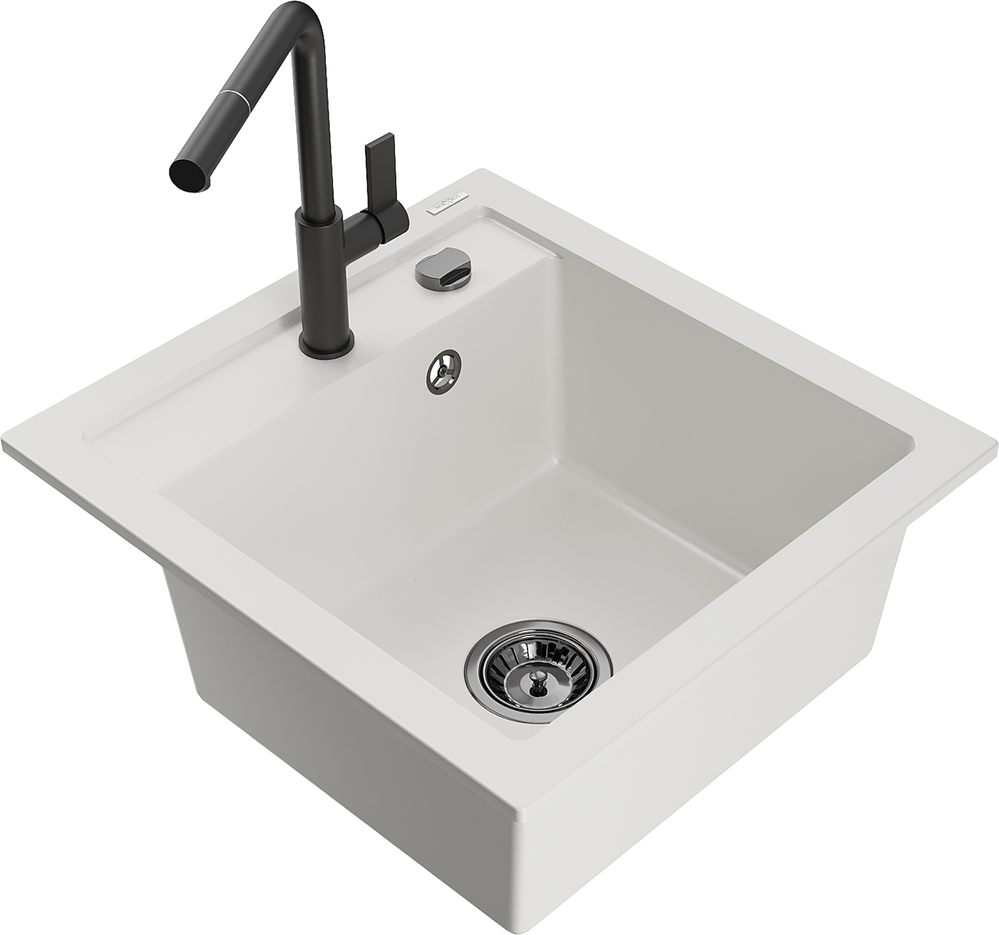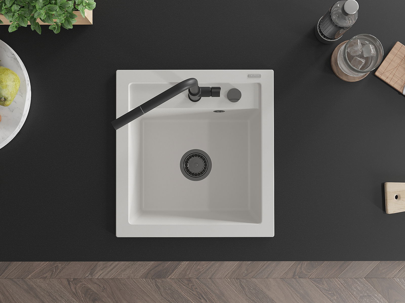 Mexen Vito granit izlietne ar 1 nodalījumu un virtuves jaucējkrānu Flora, balta - 6503-20-670401-70-B