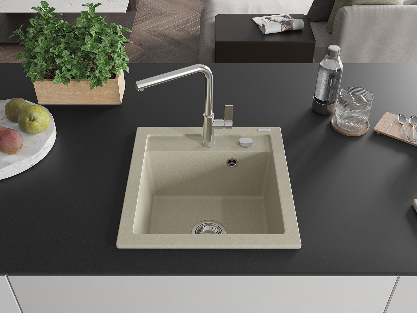Izlietnes virsma ir izturīga pret traipiem un krāsas izmaiņām, tāpēc to ir viegli uzturēt tīru un tā saglabā savu krāsu ilgu lietošanas laiku. Estētiski un praktiski papildina jebkuru virtuvi.