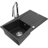 Mexen Cesar granitizlietne 1-kameras izlietne ar noteku un virtuves jaucējkrānu Elia, melna - 6514-77-670101-00