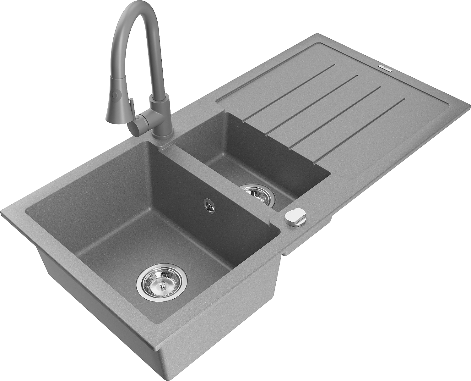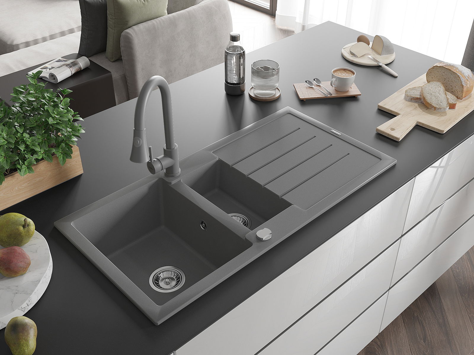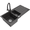 Mexen Andres granit izlietne 1,5 nodalījumu ar notecētavu un virtuves jaucējkrānu Elia, pelēks - 6515-71-670101-71