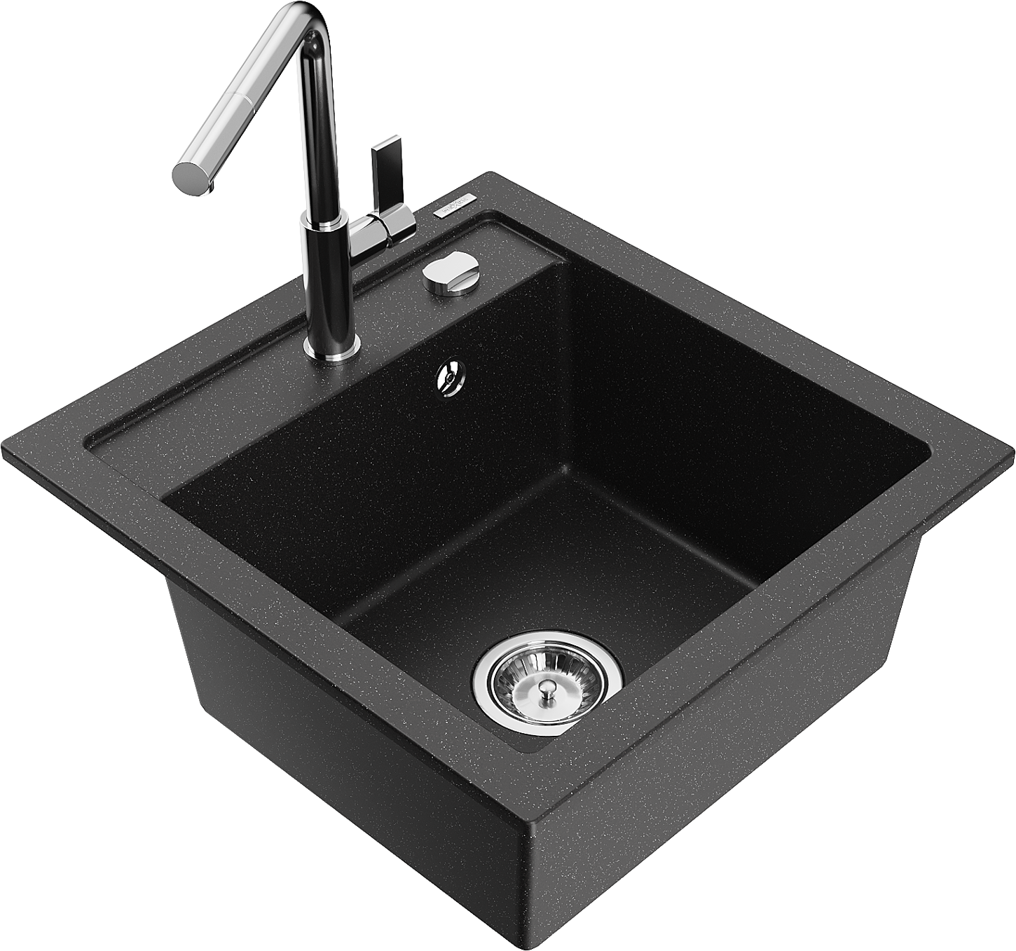Mexen Vito granitizlietne ar vienu sekciju un virtuves jaucējkrānu Flora, melns/sudraba metāliks - 6503-73-670401-00